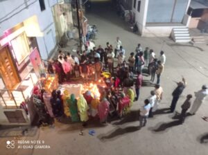 यावेळी महाराष्ट्र पोलीस युवराज चव्हाण , नाना वसावे, तालुका भोईसमाज अध्यक्ष धनलालजी शिवदे उपाध्यक्ष चंदू सोनवने,प्रकाश ,मणीलाला कुंभार ,नारायण शिवदे,शिवदास,साठे,संतोष जोहरी,आनंद मराठे,सुधाकर जोहरी महिला बेबीबाई सोनवणे,राणू बाई शिवदे,संगीताबाई जोहरी,उशाबाई भोई ,माया जोहरी,अहिल्या कुंभार,सीमाबाई ढोले आदी उपस्थित होते.यावेळी सूत्रसंचलन प्रकाश वानखेडे तर आभार चंद्रकांत भोई यांनी केले. यावेळी कुंभार गल्ली, भोईगल्ली, जोहरी गल्लीतील महिला मंडळ व जेष्ठ नागरिक व युवती युवक उपस्थित होते. कार्यक्रमात मयुर ढोले जयेश कुंभार,नीरज भोई ,तुषार जोहरी किशोर कुंभार ,भैय्या जोहरी, चेतन जोहरी,राहुल सोनवणे ,मयुर कुंभार,चिंटू जोहरी,सचिन भोई गिरीश भोई , मयुर भोई ललित ढोले आदींचे सहकार्य लाभले.