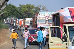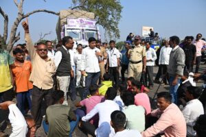 नंदुरबार तालुक्यातील पळाशी येथे कृषी उत्पन्न बाजार समितीतर्फे कापूस खरेदी केंद्रात कापूस खरेदीची सुरूवात करण्यात आली आहे. शुक्रवारी याठिकाणी कापसाला प्रति क्विंटल ८ हजार ४०० रूपये दर मिळाला होता. आज पळाशी येथील कापूस खरेदी केंद्रात सुमारे १०० ते १५० वाहनातून शेतकरी कापूस विक्रीसाठी दाखल झाले होते. यावेळी कापसाला ७ हजार २०० रूपये भाव प्रतिक्विंटल मिळाल्याने शेतकरी संतप्त झाले. यावेळी संतप्त शेतकर्यांनी नंदुरबार निझर रस्त्यावरील पळाशी फाटयावर रास्तारोको आंदोलन केले. दोन दिवसापुर्वी ८ हजार ४०० भाव असतांना दोन दिवसातच हजार ते १२०० रूपयांचा दर कमी झाल्याबद्दल संतप्त भावना व्यक्त केल्या.