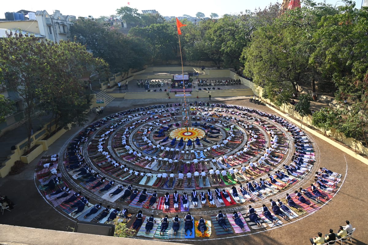 सुमारे 600 विद्यार्थ्यांनी शालेय मैदानावर सूर्यनमस्कार घालून पृथ्वीवर येणाऱ्या सूर्यकिरणांना प्रणाम केले.