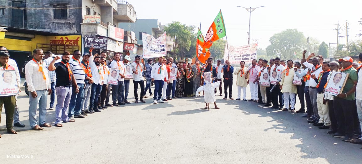 राज्याचे विरोधी पक्षनेते अजित पवार यांनी छत्रपती संभाजी महाराज हे धर्मवीर नव्हते तर स्वराज्य रक्षक होते सांगत इतिहासावर विवादित वक्तव्य केल्याने भारतीय जनता पक्ष तर्फे त्यांच्या पूतळ्याचे दहन करण्यात आले.
