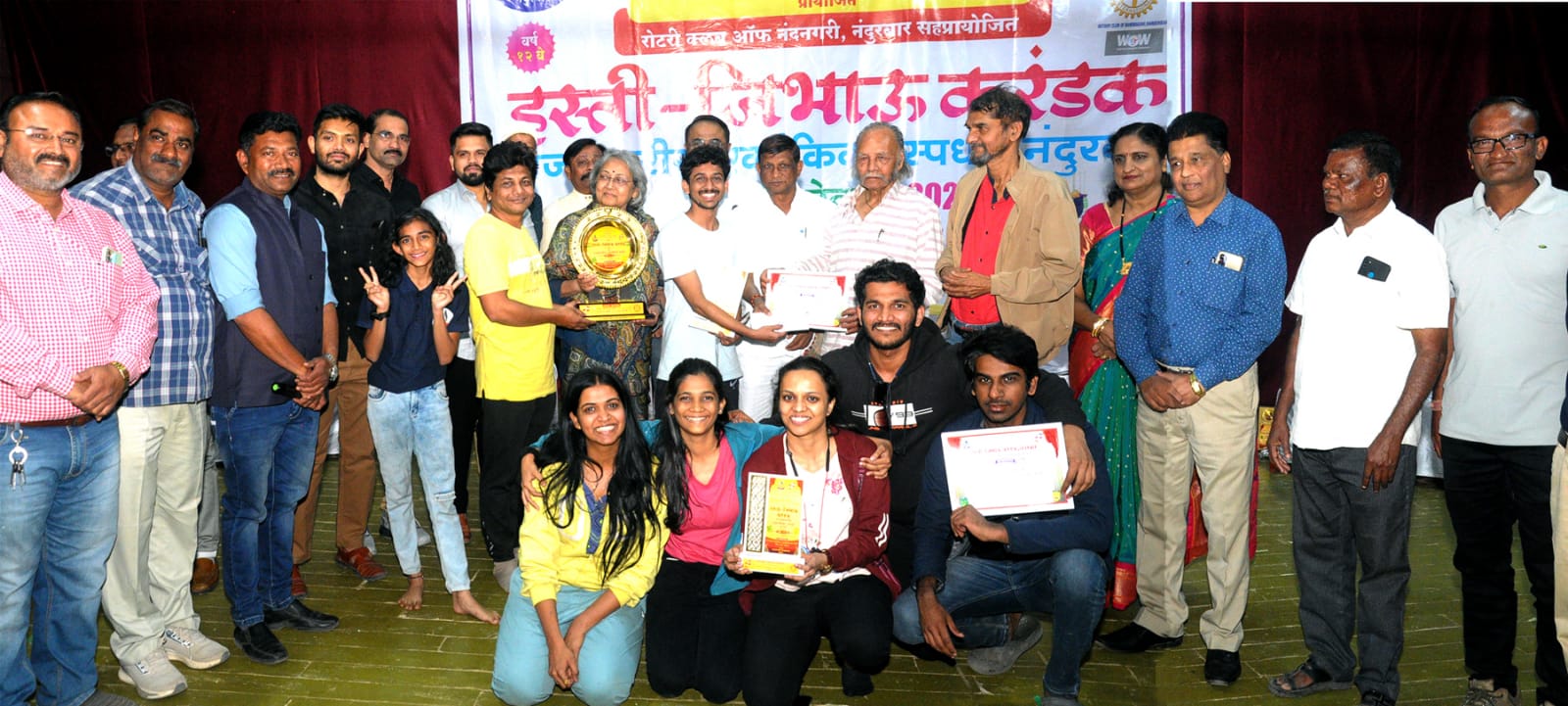 गाडगेबाबा शैक्षणिक व सांस्कृतिक सेवा मंडळ शिंदे, ता.जि.नंदुरबार आयोजित राज्य पुरस्कार शिक्षक जयदेव लिंबा पेंढारकर तथा जिभाऊ  यांच्या स्मरणार्थ दि हस्ती को-ऑप.बँक लि. प्रायोजित व रोटरी क्लब ऑफ नंदनगरी सहप्रायोजित हस्ती-जिभाऊ करंडक राज्यस्तरीय एकांकिका स्पर्धेचा दि.२२ जानेवारी रोजी छत्रपती शिवाजी महाराज्य नाट्य मंदिरात जल्लोषात समारोप झाला. या पारितोषीक वितरण प्रसंगी मंंचावर आदिवासी देवमोगरा एज्युकेशन सोसायटीचे अध्यक्ष राजेंद्रकुमार गावीत, दि हस्ती को-ऑप बँक लि. दोंडाईचाचे व्यवस्थापकीय संचालक सतिष जैन, रोटरी क्लब नंदनगरीचे डॉ.विशाल चौधरी, शिक्षण विस्तार अधिकारी डॉ.सचिन गोसावी, ज्येष्ठ पत्रकार तथा नाट्यलेखक रमाकांत पाटील, डॉ.चेतन चौधरी, डॉ.निखिल चौधरी, फखरुद्दीन जलगुनवाला, दिलीप खैरनार, अभिनेता अनिल मोरे, दिपस्तंभ पुरस्काराचे मानकरी सौ.सुनिता चव्हाण, शाम रंजनकर, दिनानाथ मनोहर आदी उपस्थित होते.