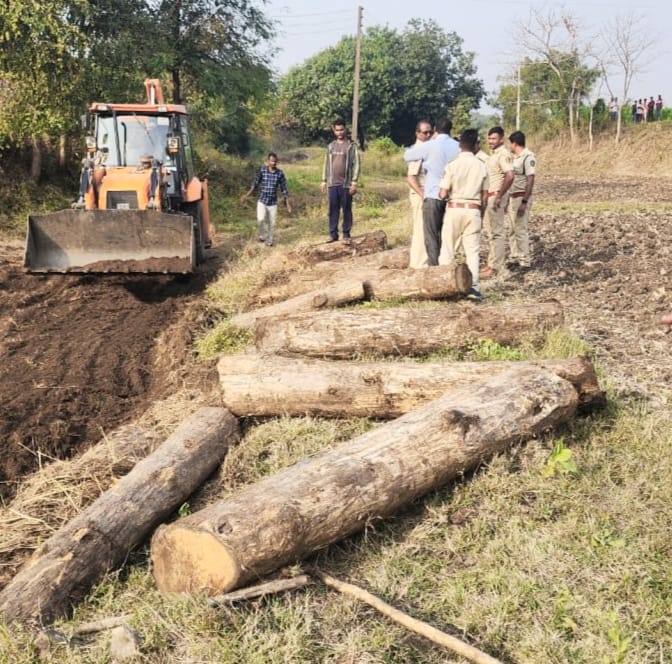 याबाबत अधिक माहिती अशी की,सहाय्यक वन संरक्षण प्रादेशिक व वन्यजीव यांना मिळालेल्या गुप्त बातमी वरून त्यांचे सह वनपरिक्षेत्र अधिकारी नवापूर प्रादेशिक , वनपरिक्षेत्र अधिकारी चिंचपाडा प्रादेशिक, सहाय्यक वन संरक्षण परिवेक्षाधिन, वनक्षेत्र स्टाफ नवापूर प्रादेशिक व वनक्षेत्र स्टाफ चिंचपाडा प्रादेशिक सह शासकीय वाहनाने हुकमाफळी गावालगत च्या महसुल भागातील नाल्यात जाऊन पहाणी केली असता नाल्यात नविन पीक पेरा केलेल्या ठिकाणी खोदून पाहिले असता मातीत साग लाकडे लपवलेली दिसली तरी JCB मशीन च्या साहाय्याने सदरची साग लाकडे काढून ट्रॅक्टर मध्ये भरून शासकीय विक्री आगार नवापूर येथे आणून पावतीने जमा केले. जप्त माल साग गोल नग 12 घन मीटर 1.860 या मालाची बाजार भावानुसार अंदाजित किंमत 2 ते 2.5 लाख रूपये एवढी आहे.