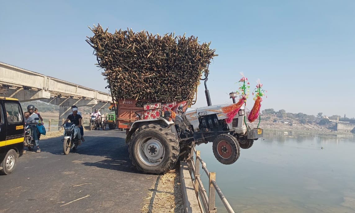 नंदुरबार जिल्हातील शहादा तालुक्यात तापी नदीचा काठावर वसलेलं प्रकाशा हे एक तीर्थ-क्षेत्र. यालाच आपण दक्षिण काशी म्हणून प्रख्यात आहे. प्रकाशा येथे तापी पुलावर नेहमीच रहदारी असते.आज सकाळी अकरा वाजता प्रकाशा येथील तापी नदी पुलावर उसाने भरलेल्या ट्रॅक्टरचा अपघात होऊन अधांतरी कठड्यावर लटकलेले आहे. ट्रॅक्टर चालक थोडक्यात बचावले आहे. अपघात प्रकरणी कोणालाही दुखापत झालेली नाही.