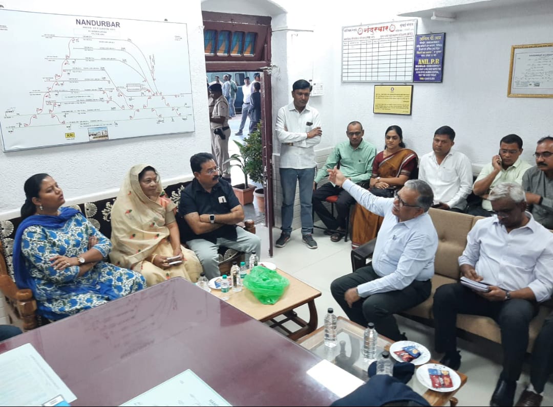 नंदुरबार रेल्वे स्थानकावर आढावा घेण्यासाठी पश्चिम रेल्वेचे महाप्रबंधक अशोक कुमार मिश्रा आले होते. यावेळी खा.डॉ.हीना गावित यांनी विविध विषयांवर त्यांच्याशी चर्चा करुन स्थानिक समस्या निदर्शनात आणून दिल्या.दरम्यान पुण्यासाठी रेल्वे सुरू करण्यासाठी प्रशासन प्रयत्नशिल असून परंतु पुणे रेल्वे स्थानकात जागाच नसल्याने नंदूरबार हून रेल्वे सुरू करता येत नसल्याचे पश्चिम रेल्वेचे महाप्रबंधक यांनी यावेळी सांगितले दरम्यान, नंदुरबार रेल्वे स्थानकावर प्रवाशांच्या सुविधेसाठी चौथ्या प्लॅटफार्मची निर्मिती करण्यात यावी, अशी मागणी रेल्वे सल्लागार समिती सदस्यांकडून करण्यात आली असून याबाबत महाप्रबंधकांना निवेदन देण्यात आले.