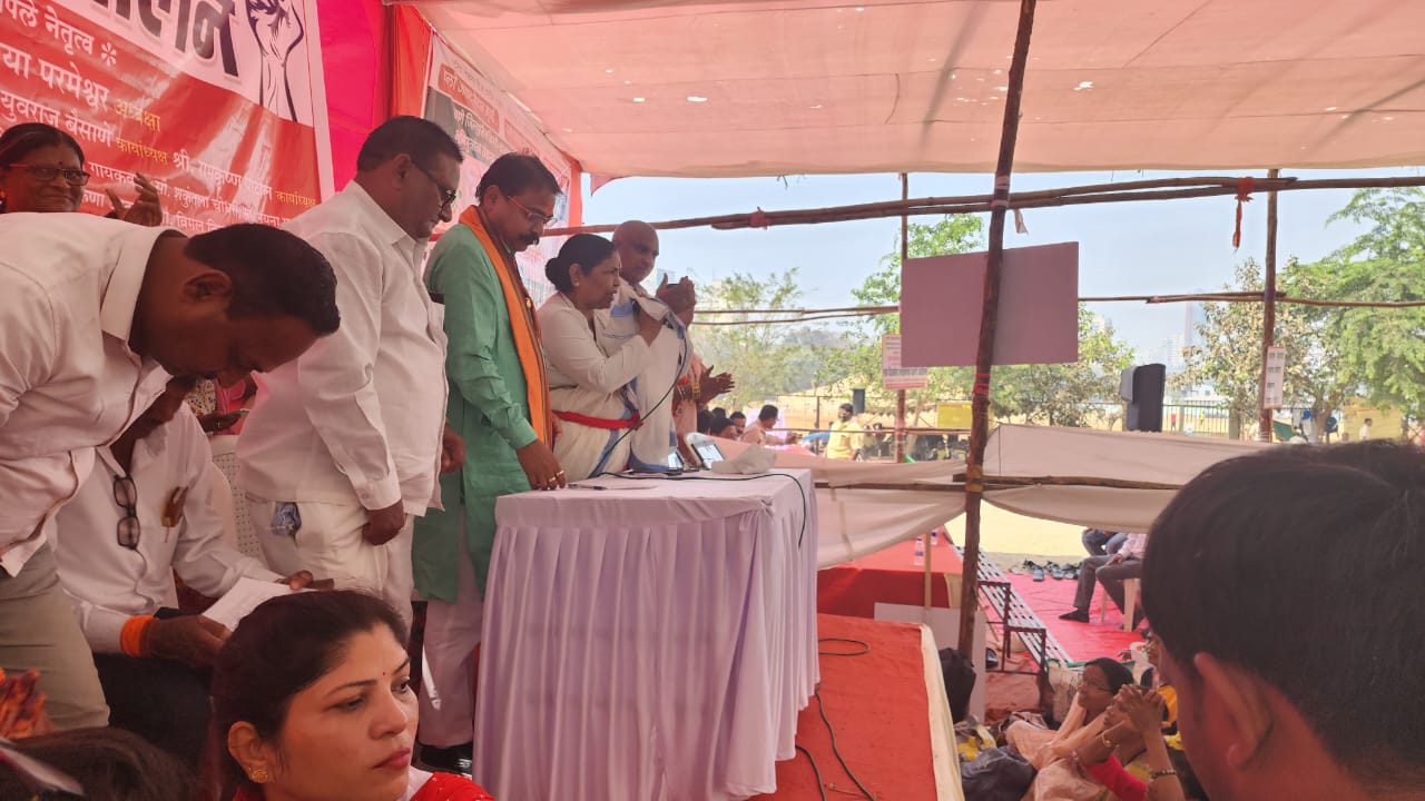 महाराष्ट्र विधान परिषदेचे सदस्य आमदार आमश्या पाडवी यांनी मुंबई येथील आझाद मैदानावर महाराष्ट्र राज्य अंगणवाडी कर्मचारी संघटनेच्या वतीने सुरु असलेल्या आंदोलनात आंदोलन कर्त्या कर्मचाऱ्यांची भेट घेऊन पाठिंबा व्यक्त केला.व संघटनेच्या वतीने मांडण्यात आलेल्या रास्त मागण्यां विधान परिषदेत मांडणार असल्याचे आश्वासन दिले.यावेळी महाराष्ट्र राज्य अंगणवाडी कर्मचारी संघटनेच्या राज्याध्यक्ष माया परमेश्वर, कार्याध्यक्ष युवराज बैसाणे,अमोल बैसाणे,सुधीर परमेश्वर,कान्हा नाईक,अक्कलकुवा तालुक्यातुन राजु पाटील आदी उपस्थित होते.यावेळी तालुक्यातील असंख्य अंगणवाडी कार्यकर्त्या आंदोलनात सहभागी झाल्या आहेत.