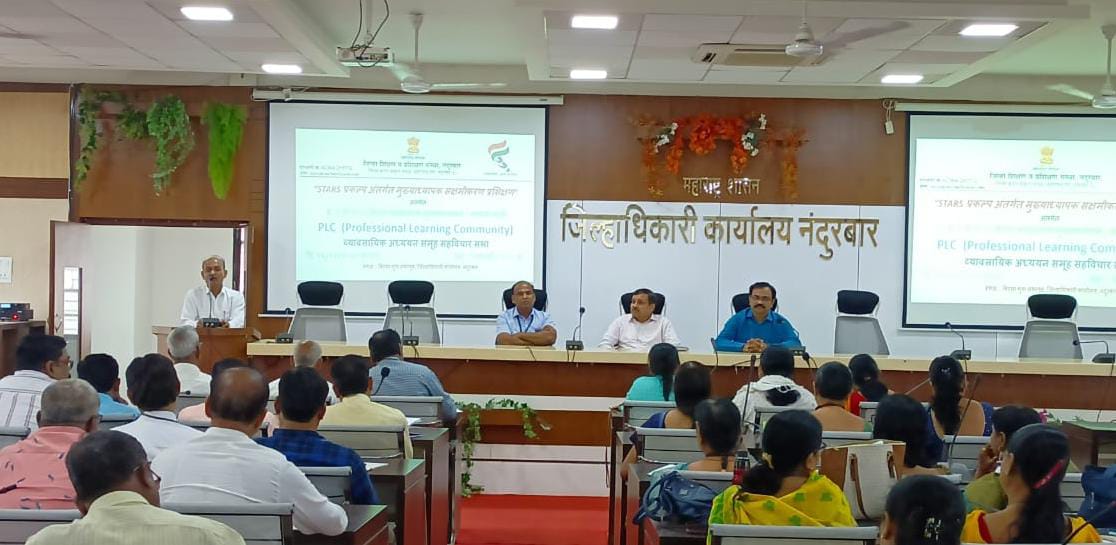 स्टार्स प्रकल्प अंतर्गत मुख्याध्यापक सक्षमीकरण  संपन्न प्रशिक्षण” अंतर्गत इ. १ ली ते १२ वीच्या शाळांमध्ये मुख्याध्यापक / प्राचार्य यांची PLC (Professional Learning Community) व्यावसायिक अध्ययन समूह सहविचार सभा बिरसा मुंडा सभागृह, जिल्हाधिकारी कार्यालय, नंदुरबार येथे  संपन्न झाली.
