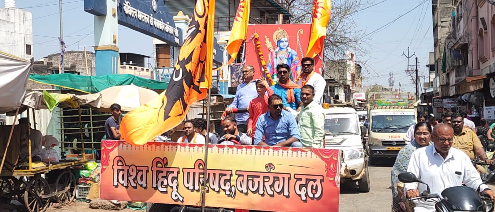 शहरात आज सकाळी नऊ वाजता विश्व हिंदू परिषद व बजरंग दलातर्फे रामजन्मोत्सव निमित्त दोंडाईचा रस्त्यावरील प्रेस मारुती मंदिरापासून भव्य मोटरसायकल रॅली काढण्यात आली.