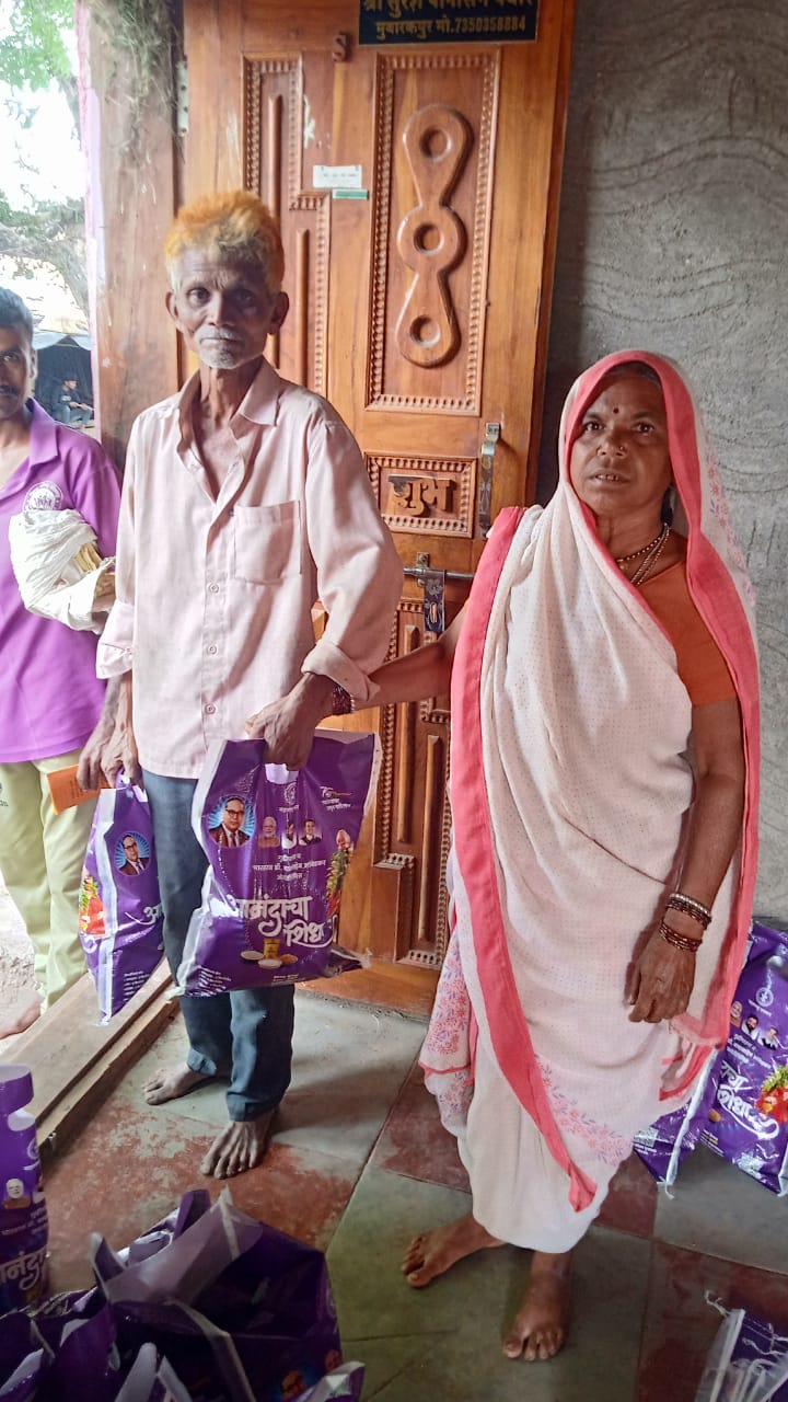 शहादा तालुक्यातील मुबारकपुर येथे शुक्रवारी सरपंच ताईबाई अहेर यांच्या हस्ते शिधापत्रिका धारकांना आनंदाचा शिधा वाटप करण्यात आला. यात एक किलो रवा, एक किलो डाळ, एक किलो साखर व एक लीटर पामतेल देण्यात आले.