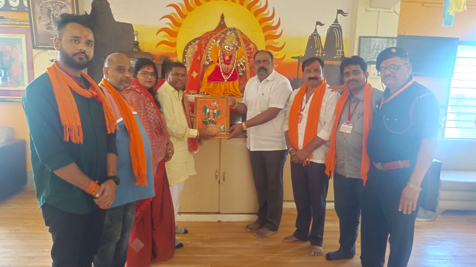 यावेळी सप्तश्रृंगी देवी निवासिनी ट्रस्टच्या वतीने व्यवस्थापक सुदर्शन दहातोंडे यांनी भरत गावित व संगीता गावित यांचा आई सप्तश्रृंगी मातेची प्रतिमा देऊन सत्कार केला. याप्रसंगी नवापुर येथील आई सप्तश्रृंगी प्रतिष्ठानचे अध्यक्ष हेमंत जाधव, उपाध्यक्ष रज्जू अग्रवाल, सचिव शैलेश सैन, हेमंत शर्मा उपस्थित होते.
