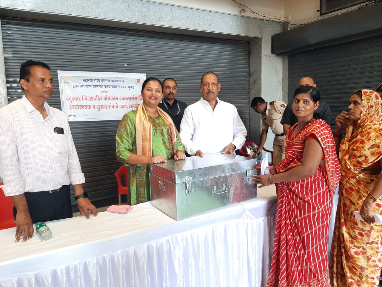 येथील कोरीट नाका परिसरातील बाफना कॉम्प्लेक्स येथे ‘शासन आपल्या दारी’ मोहिमेत महाराष्ट्र राज्य इमारत बांधकाम व इतर बांधकाम कामगार कल्याणकारी मंडळ, मुंबई तर्फे आयोजित नंदुरबार जिल्ह्यातील बांधकाम कामगारांसाठी अत्यावश्यक व सुरक्षा संचाचे वाटप पालकमंत्री डॉ. गावित यांच्या हस्ते करण्यात आले, त्यावेळी ते बोलत होते. कार्यक्रमास खासदार डॉ. हिना गावित, कामगार अधिकारी अ. द. रूईकर, नोंदणी अधिकारी, विशाल जोगी, संजय कोकणी, केंद्र संचालक प्रवीण पाटील आदी उपस्थित होते.