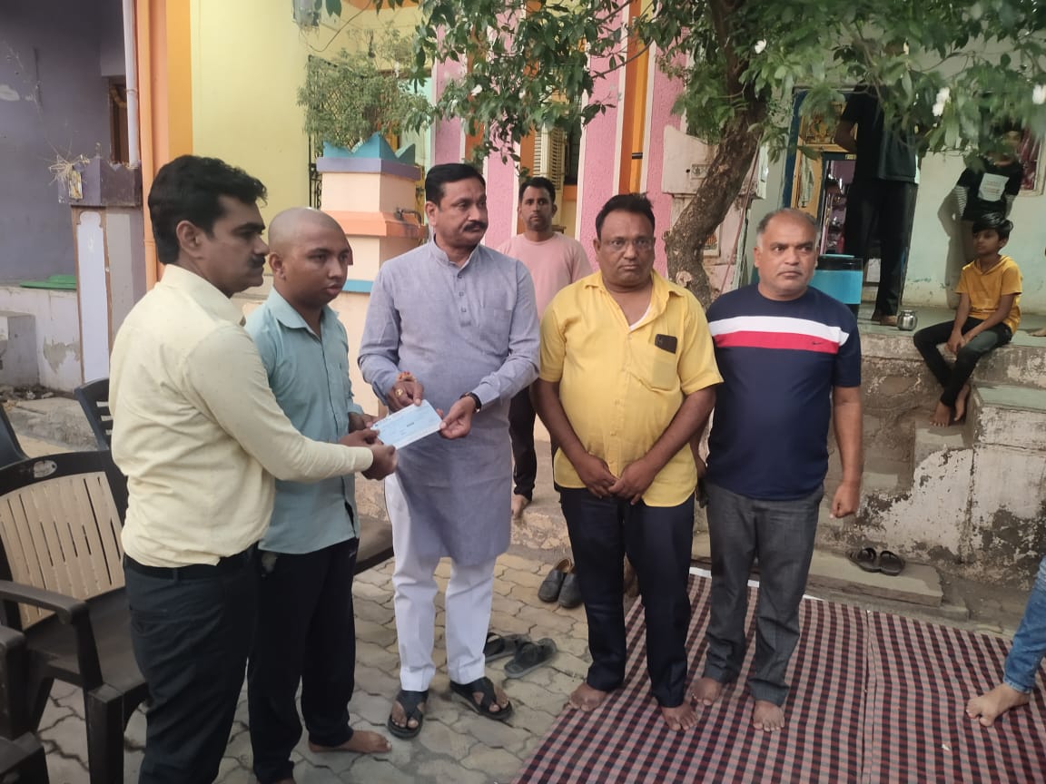 तळोदा तालुक्यातील चिनोदा गावाजवळ वडाचे झाड कोसळून त्यात मृत्यू झालेल्या कारचालक राजेंद्र रोहिदास मराठे यांच्या कुटुंबाला प्रशासनाकडून तत्काळ चार लाखांचा धनादेश आ. राजेश पाडवी यांच्या हस्ते सुपूर्द करण्यात आला.