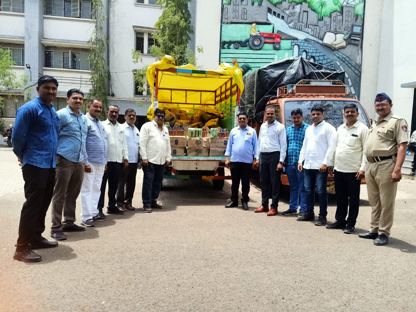 त्यात इंम्पेरियल ब्ल्यू व्हिस्को १८० मि.ली चे १०० बॉक्स (महाराष्ट्र राज्यात प्रतिबंधीत व गोवा राज्यात विक्रीसाठी असलेले), रॉयल चॅलेज व्हिस्कीचा १८० मि.ली चा एक बॉक्स व टूबर्क बिअर ५०० मि.ली तीन चे १९ बॉक्स. सदर कारवाई महाराष्ट्र दारुबंदी कायदा १९४९ अंतर्गत कलम नुसार गुन्हा दाखल करण्यात आला आहे. अन्वये करण्यात आली.