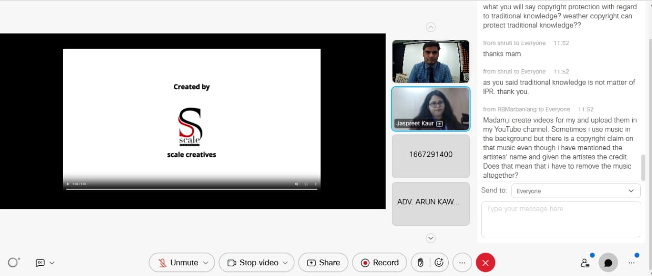 कार्यक्रमात तज्ञ मार्गदर्शक म्हणून म्हणून पेटेंट ऑफिस मुंबई येथील पेटेंट परीक्षक प्रा.जसप्रीत कौर उपस्थित होत्या. त्यांनी आपल्या मार्गदर्शनात कॉपीराइट संबंधी कायदे, प्रक्रिया व त्याचे महत्त्व या मुद्यांवर सखोल मार्गदर्शन केले. कॉपीराइट आजच्या युगात किती महत्वाचे आहे हे देखिल त्यांनी विविध उधाहरणें देऊन स्पष्ट केले.