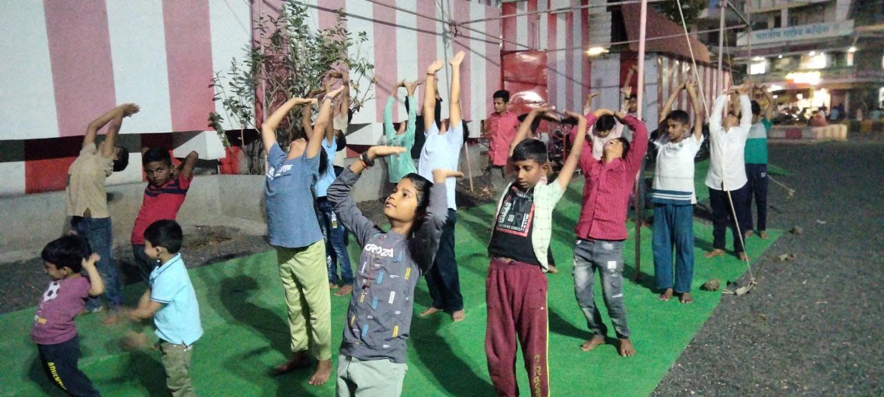 हे त्या ठिकाणी योग दिवसाच्या माध्यामातून सांगितल जात असतं त्याचपद्धतीने विशिष्ट प्रकारच्या संस्था ,कार्यालय त्याठिकाणी योग दिवसाच्या माध्यमातून गाव पातळीवर, शहर पातळीवर विशिष्ठ प्रकारे लोकांच्या माध्यमातून साजरा करत असतात त्याच औचित्याने श्री स्वामी समर्थ सेवा केंद्रामध्ये रोज संध्याकाळी त्याठिकाणी बालसंस्कार केंद्राचा कार्यक्रम होत असून याठिकाणी रोज संध्याकाळी बालसंस्कार केंद्र घेतला जात असतो