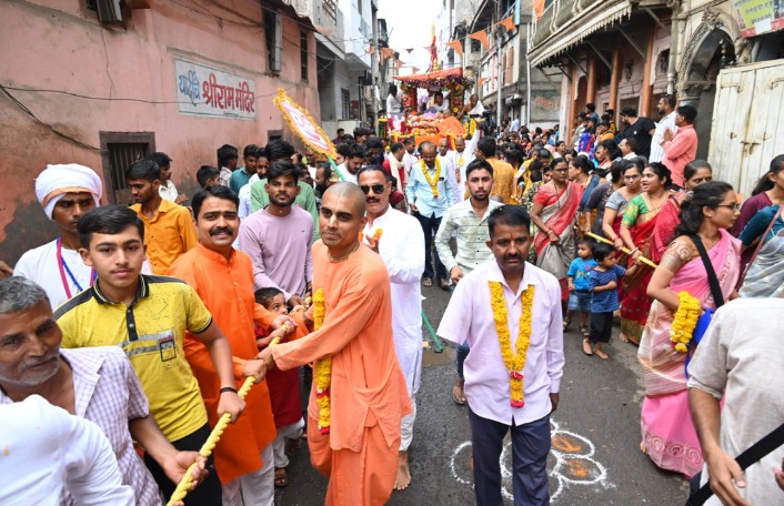 रथयात्रेत भाविक मोठ्या संख्येने उपस्थित होते. या रथयात्रेत परिसरातील भाविकांनी मोठ्या उत्साहाने स्वागत केले पुष्पवृष्टी केली. महिला पुरुषांसह इस्कॉनचे प्रमुख संत व महाराज यावेळी उपस्थित होते. रथ ओढण्यासाठी भाविकांनी गर्दी केली. ठिकठिकाणी रथ यात्रेचे पूजन करण्यात आले. समारोपानंतर विदेशी भक्तांच्या समूह मार्फत प्रवचन देण्यात आले त्यानंतर महाप्रसाद वाटप करण्यात आला.