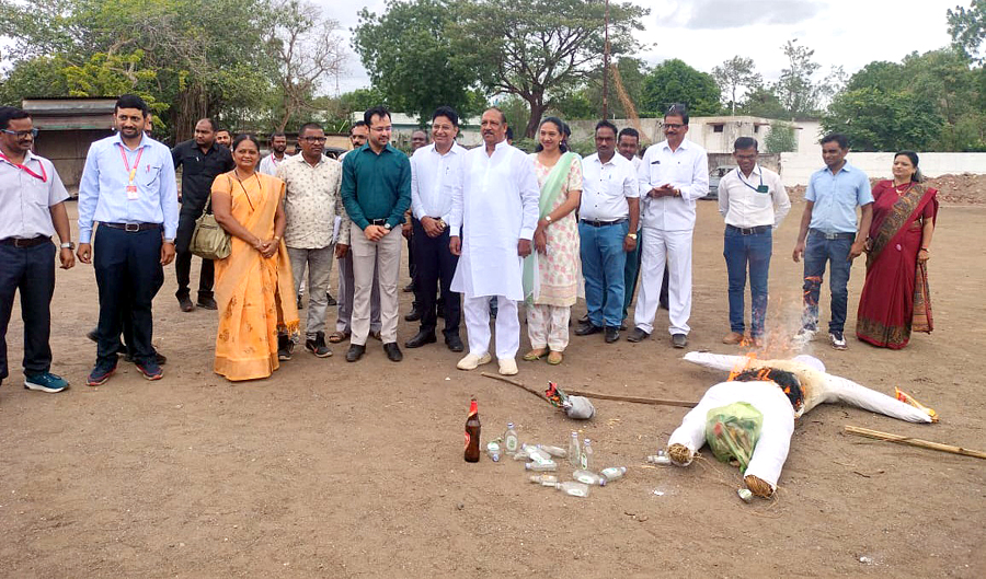 नंदुरबार येथील पोलीस कवायत मैदानावर आज आशा व्यसनमुक्ती केंद्रातर्फे नशामुक्त भारत पंधरवाड्याचा समारोप करण्यात आला. पालकमंत्री डॉ.विजयकुमार गावित यांच्या हस्ते व्यसनाच्या पुतळ्याचे दहन करण्यात आले.