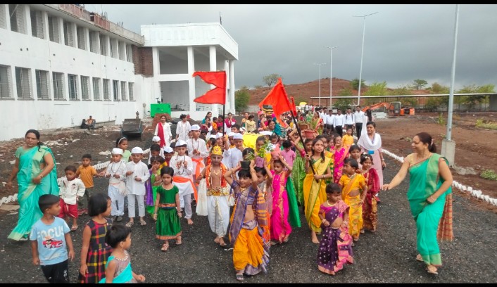 महाराष्ट्राच्या समृद्ध सांस्कृतिक परंपरेचा भाग असणारी आषाढी एकादशी सोहळा एस. एम. के. डी. एज्युकेशन सोसायटी नंदुरबार येथील एम. के. डी. इंग्लिश मीडियम (CBSE) शाळेच्या विद्यार्थ्यांसह शिक्षकांनी सहभागी होत भक्तिमय वातावरणात दिंडी काढून आषाढी एकादशी साजरी केली.