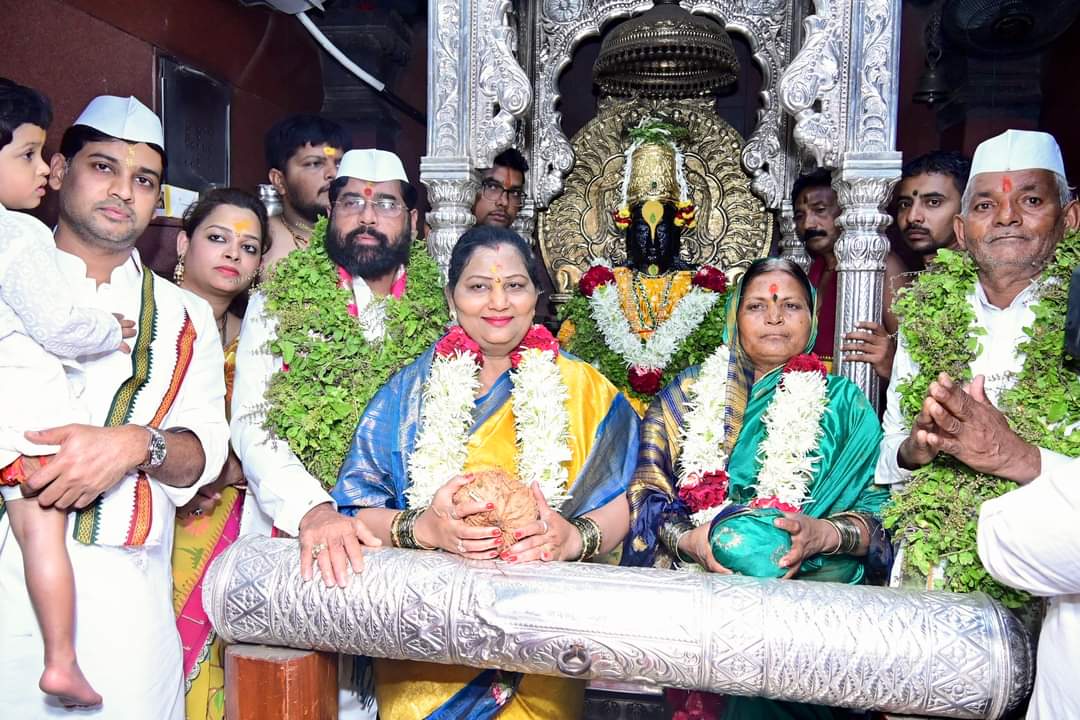 यावेळी पालकमंत्री राधाकृष्ण विखे पाटील, सार्वजनिक आरोग्य मंत्री प्रा. डॉ. तानाजी सावंत, ग्रामविकास व वैद्यकीय शिक्षण मंत्री गिरीष महाजन, बंदरे व खनीकर्म मंत्री दादाजी भुसे, शालेय शिक्षण मंत्री दीपक केसरकर, मंदिर समितीचे सह अध्यक्ष गहिनीनाथ महाराज औसेकर आदी उपस्थित होते.