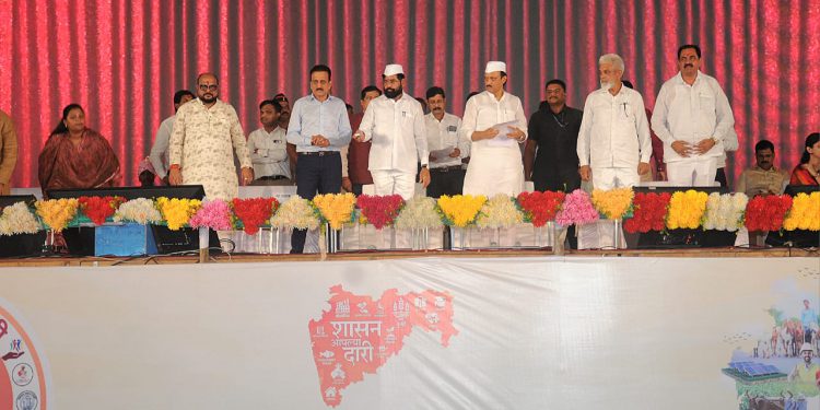 येथील एसआरपीएफ मैदानावर ‘शासन आपल्या दारी’ अभियानातंर्गत धुळे जिल्हास्तरीय कार्यक्रमाचे उद्घाटन मुख्यमंत्री एकनाथ शिंदे यांच्या हस्ते करण्यात आले. त्यावेळी ते बोलत होते. याप्रसंगी उपमुख्यमंत्री अजित पवार, पालकमंत्री गिरीष महाजन, पाणीपुरवठा व स्वच्छतामंत्री गुलाबराव पाटील, बंदरे व खनिकर्म मंत्री दादाजी भुसे, मंत्री अनिल पाटील, खासदार डॉ. हीना गावित, जिल्हा परिषदेच्या अध्यक्षा अश्विनी पवार, आमदार किशोर दराडे, जयकुमार रावल, मंजूळाताई गावीत, काशीराम पावरा, चिमणराव पाटील, मंगेश चव्हाण, महापौर प्रतिभा चौधरी आदी मान्यवर उपस्थित होते.