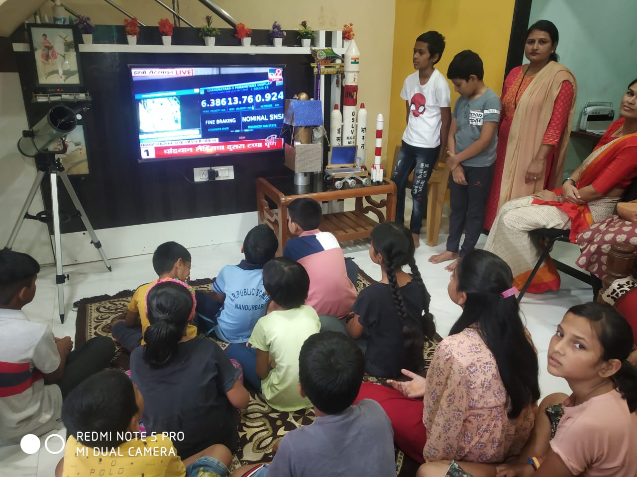 नक्षत्र छंद मंडळातर्फे विद्यार्थ्यांनी व नागरिकांनी लाईव्ह चांद्रयान लँडिंग पाहिले यावेळी संचालिका चेतना पाटील यांनी ऐतिहासिक घटनेची शास्त्रीय माहिती दिली.