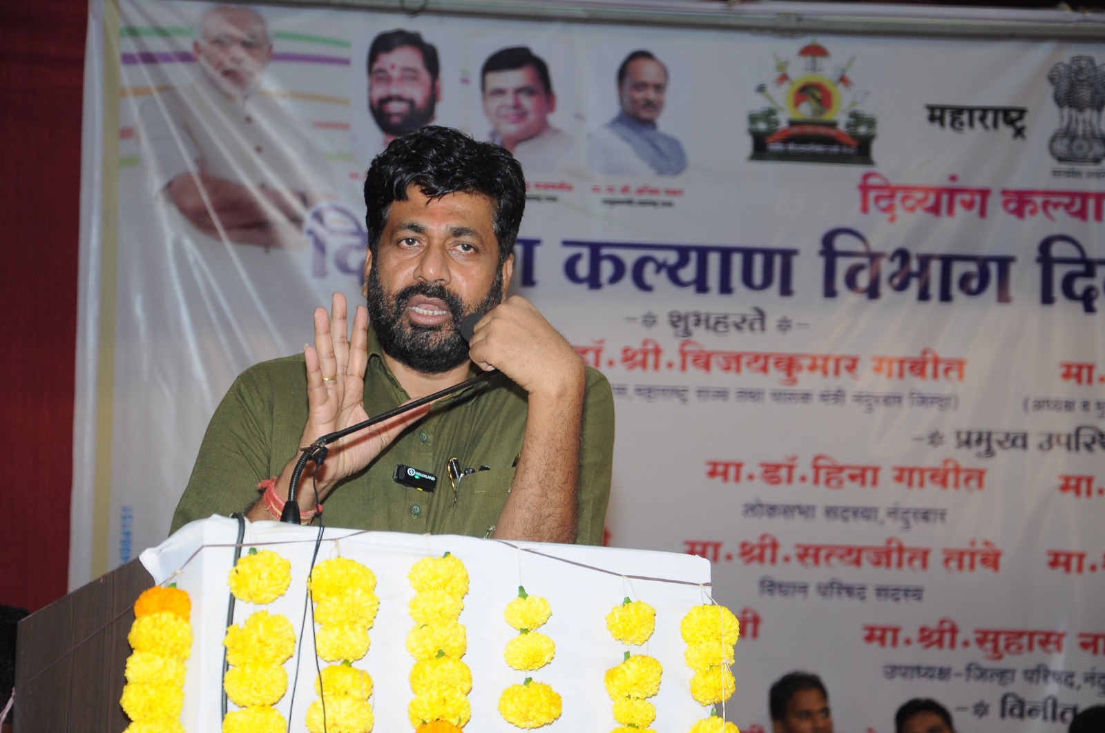 ते आज नंदुरबार शहरातील श्री छत्रपती शिवाजी नाट्य मंदिरात आयोजित दिव्यांगांच्या दारी कार्यक्रमाच्या उद्घाटन प्रसंगी बोलत होते. यावेळी दिव्यांग कल्याण विभागाचे अध्यक्ष तथा मुख्य मार्गदर्शक ओमप्रकाश उर्फ बच्चू कडू, जिल्हा परिषदेचे उपाध्यक्ष सुहास नाईक, जिल्हा सभापती हेमलता शितोळे, जिल्हाधिकारी मनीषा खत्री, जिल्हा परिषदेचे मुख्य कार्यकारी अधिकारी सावन कुमार, सहाय्यक जिल्हाधिकारी मंदार पत्की, समाज कल्याण उपायुक्त सुंदरसिंग वसावे, जिल्हा अधिक्षक कृषी अधिकारी राकेश वाणी, तहसीलदार नितीन गर्जे, विविध शासकीय यंत्रणांचे प्रमुख दिव्यांगांसाठी काम करणाऱ्या सेवाभावी संस्थांचे पदाधिकारी व दिव्यांग बांधव यावेळी उपस्थित होते.