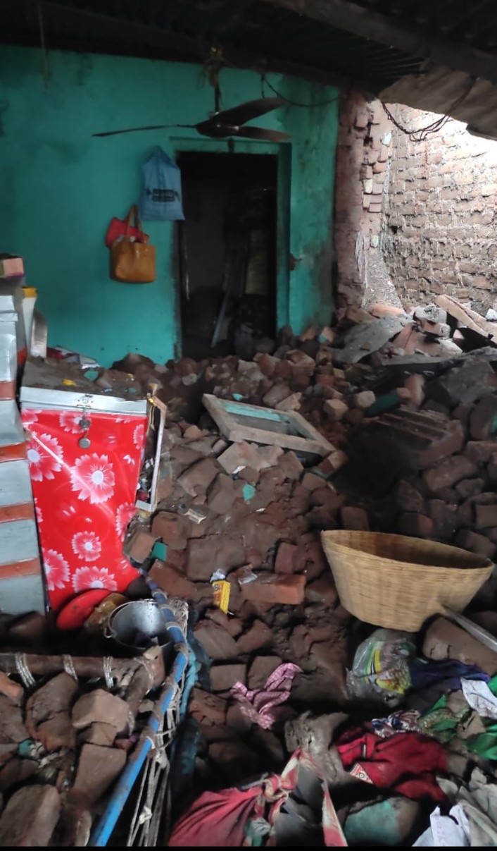 याबाबत अधिक माहिती अशी की, नंदूरबार तालुक्यातील रजाळे येथील शेतकरी राजेंद्र भटू मराठे यांच्या कुटुंबावर आज 10 सप्टेंबर रोजी पहाटे 4 च्या सुमारास त्यांच्या डोळ्यासमोरच थरार पहायला मिळाला. घरातील सर्वजण पहाटेच्या साखर झोपेत असताना अचानक भिंत पडून यामध्ये दबले गेले. राजेंद्र मराठे हे पहाटे पाणी भरायला उठले असता त्यांच्या लक्षात येताच त्यांनी आरडाओरड केली.