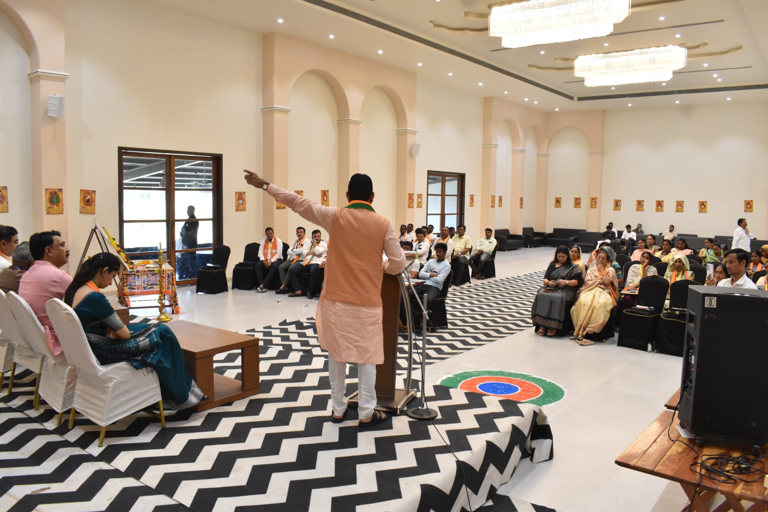 पालघर, धुळे, नंदुरबार आणि जळगाव आदिवासी बहुल जिल्ह्यातून निवडून आलेल्या भारतीय जनता पार्टीच्या जिल्हा परिषद सदस्यांसाठी दिनांक १३ आणि १४ सप्टेंबर २०२३ असे दोन दिवसीय प्रशिक्षण शिबीर नंदुरबार शहरातील बाबा रिसॉर्टच्या सभागृहात आयोजित करण्यात आले होते. ६ सत्रांमधे पार पडलेल्या या शिबिराचा आज दुपारी समारोप करण्यात आला. त्याप्रसंगी व्यासपीठावर पालकमंत्री ना.डॉ.विजयकुमार गावित, खा.उन्मेश पाटील, आ जयकुमार रावल, प्रदेश कार्यालय प्रभारी रविंद्र अनासपुरे, नंदुरबार जिल्हाध्यक्ष निलेश माळी, धुळे ग्रामीण जिल्हा अध्यक्ष बबनराव चौधरी, लोकसभा निवडणुक प्रमुख तुषार रंधे, धुळे जिल्हा परिषद अध्यक्ष अश्विनी पाटील व अन्य उपस्थित होते. पालघर, धुळे, नंदुरबार आणि जळगाव या आदिवासी बहुल जिल्ह्यातून अपेक्षीत असलेल्या ७० पैकी ६० हून अधिक सदस्य जिल्हापरिषद अध्यक्ष, उपाध्यक्ष या प्रशिक्षण शिबिराला उपस्थित होते.