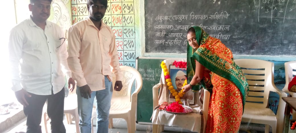 या कार्यक्रमाचे अध्यक्ष सरपंच रेखाबाई राकेश माळी यांनी नंदुरबार तालुका विधायक समितीचे संस्थापक अध्यक्ष व माजी आमदार स्व.जि.टी.बापूजींच्या पावन स्मृतीस विनम्र अभिवादन करून त्यांच्या प्रतिमेची पूजन करून कार्यक्रमाची सुरवात केली. त्यावेळी शा.व्य.स. उपअध्यक्ष विठोबा माळी यांनी विद्यार्थांना मार्गदर्शन केले.