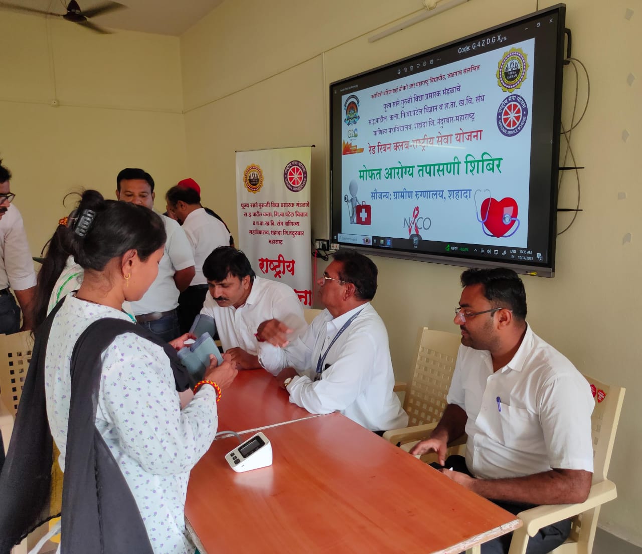 पूज्य साने गुरुजी विद्या प्रसारक मंडळाच्या कला, विज्ञान व वाणिज्य महाविद्यालय, शहादा येथील राष्ट्रीय सेवा योजना – रेड रिबन क्लब तर्फे ग्रामीण रुग्णालय, शहादा यांच्या सौजन्याने मोफत आरोग्य तपासणी शिबिराचे आयोजन करण्यात आले.