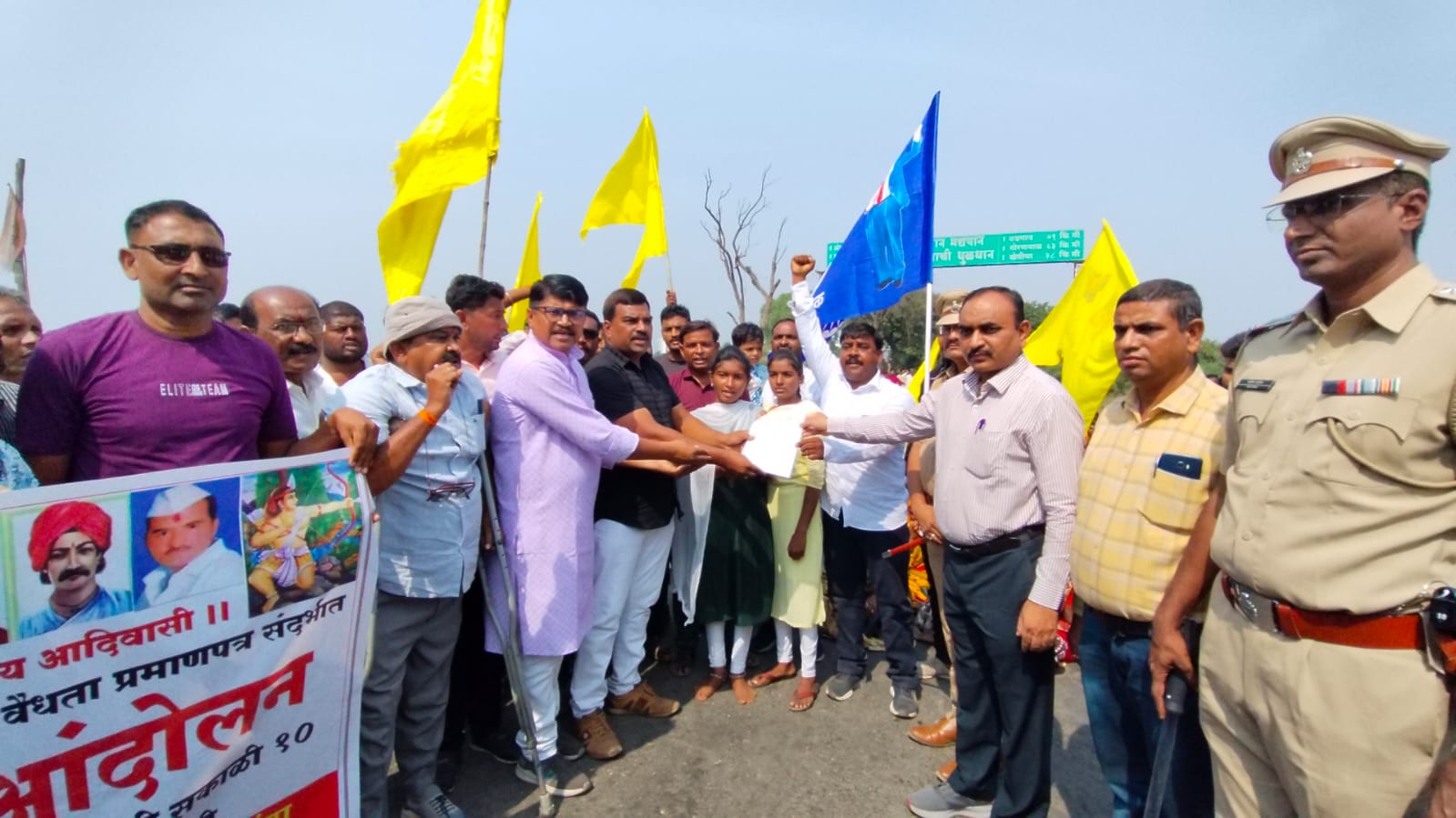 निवेदनावर विजय शिंदे , शरद शिरसाठ,गणेश बागुल, भास्कर कुवर ,किरण वाघ हेमंत सूर्यवंशी, सुनीत चित्ते, गणेश कुवर, दादा कोळी दशरथ जाधव, रमेश कोळी किरण सोनवणे राकेश कुवर संजय सोनवणे अमरजित कुवर , नारायण कोळी , दगा कोळी , भरत कोळी , शिवाजी कोळी , किशोर चित्ते , ब्रिजलाल महाले हिरालल कोळी निंबा कोळीआदींसह समाज बांधवांच्या सह्या आहेत. आंदोलन स्थळी उपविभागीय पोलीस अधिकारी दत्ता पवार व पोलीस अधिकारी कर्मचाऱ्यांनी चोख बंदोबस्त ठेवला होता.