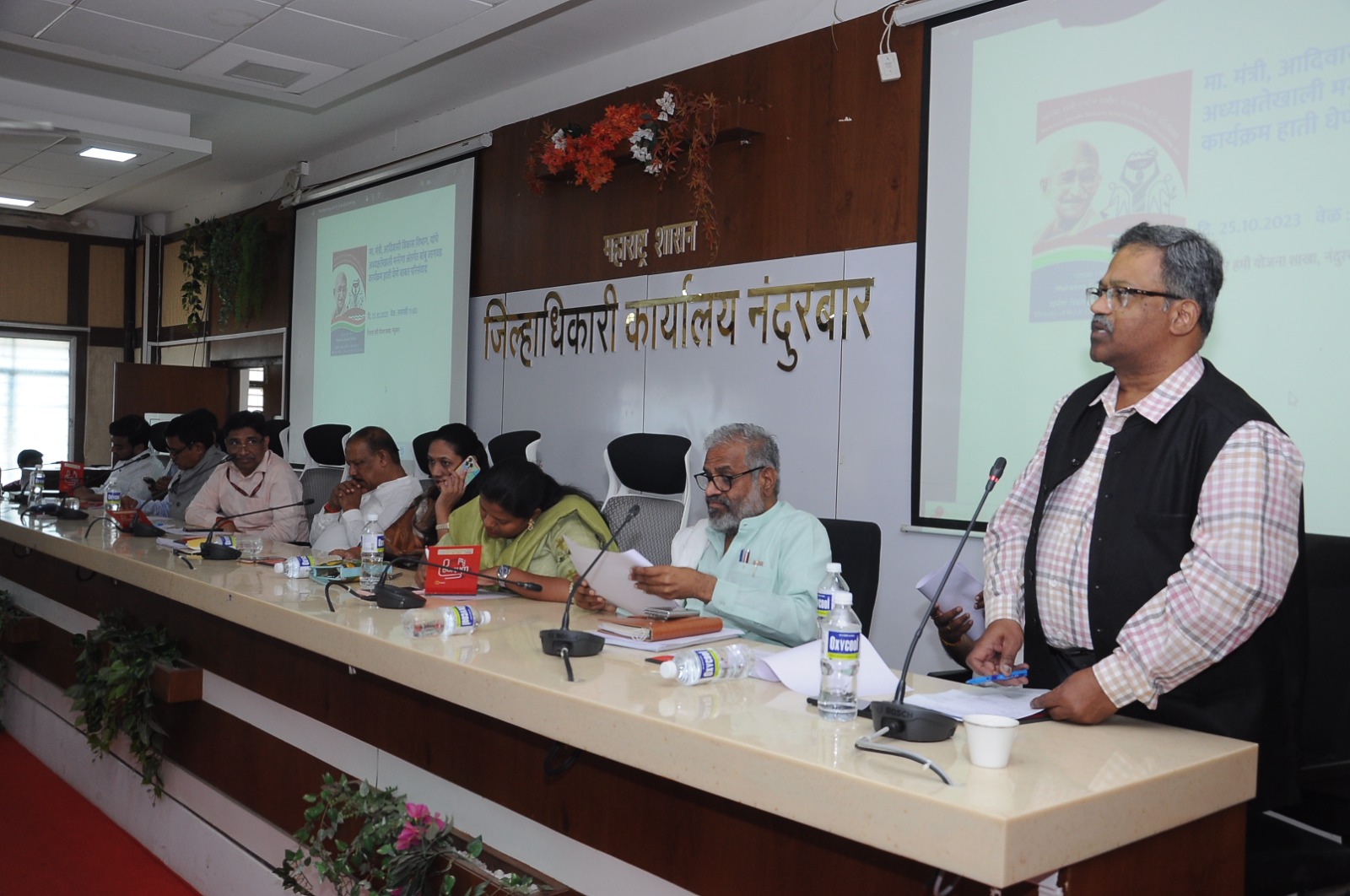 यावेळी बोलताना आदिवासी विकास मंत्री डॉ. गावित म्हणाले, जिल्ह्यातील बहुतेक ग्रामपंचायतींना सामुहिक वनहक्काच्या जमीनी मिळाल्या आहेत. या जमीनी वर्षानुवर्षे पडीक आहेत. या जमीनींवर केंद्र सरकारच्या राष्ट्रीय बांबू लागवड मिशन अंतर्गत मनरेगा, वनविभाग व आदिवासी विभागाच्या माध्यमातून मोठ्या प्रमाणावर बांबू लागवडीचा कार्यक्रम हाती घेण्याचा मानस आहे. त्यासाठी नर्मदा खोऱ्यातील धडगाव, अक्कलकुवा तालुक्यात मोठ्या प्रमाणावर वाव आहे. बांबू लागवडीच्या माध्यमातून पर्यावरण व वनसंरक्षणाचा हेतु साध्य होण्याबरोबरच रोजगार निर्मितीतून आदिवासी बांधवांचे परराज्यात होणारे स्थलांतर थांबेल, वाडेपाडे आणि खेडी स्वयंपूर्ण होण्याबरोबरच आर्थिकदृष्ट्या सक्षम होण्यास मदत होईल.