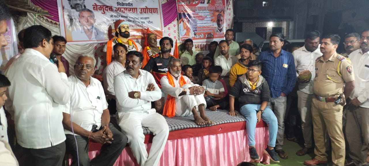 आज राज्य सरकारच्या शिष्टमंडळाने जरांगे पाटील यांची भेट घेत त्यांची समजूत काढण्याचा प्रयत्न केला. मनोज जरांगे पाटील यांची समजूत काढण्यात अखेर शिष्टमंडळाला यश आले आहे.त्यांनी उपोषण सोडल्याने गेल्या 9 दिवसांपासून नंदूरबार तालुक्यातील उमर्दे येथे गुलाब मराठे याचे सुरू असलेले उपोषण पोलीस निरीक्षक निलेश गायकवाड यांच्या हस्ते नारळ पाणी देऊन सोडवण्यात आले.यावेळी विविध नितीन जगताप, नवनीत शिंदे, रमेश कुटे, प्रा.कृष्णा मराठे, पंकज पायमुडे आदी मान्यवर व ग्रामस्थ मोठ्या संख्येने उपस्थित होते.