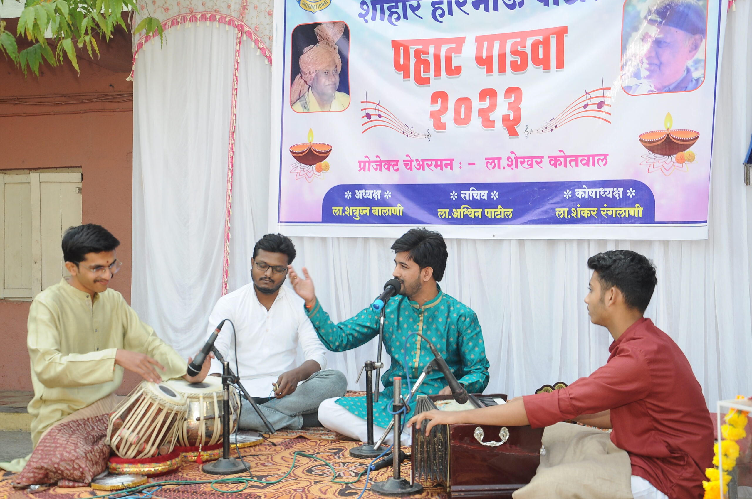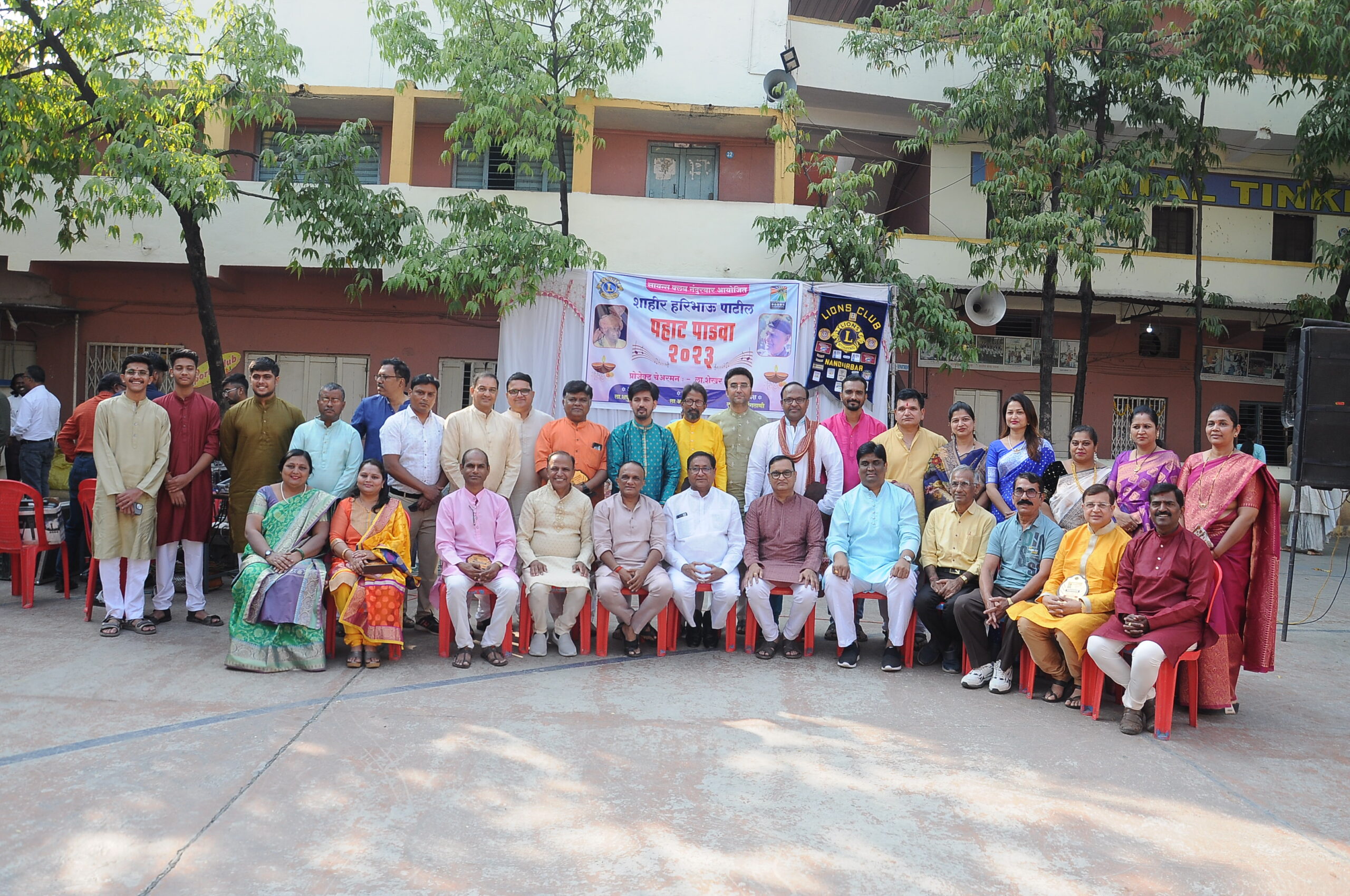 येथील लायन्स क्लबतर्फे शाहीर हरिभाऊ पाटील पाडवा पहाट कार्यक्रमाचे आयोजन श्रॉफ हायस्कूलच्या प्रांगणात करण्यात आले होते.