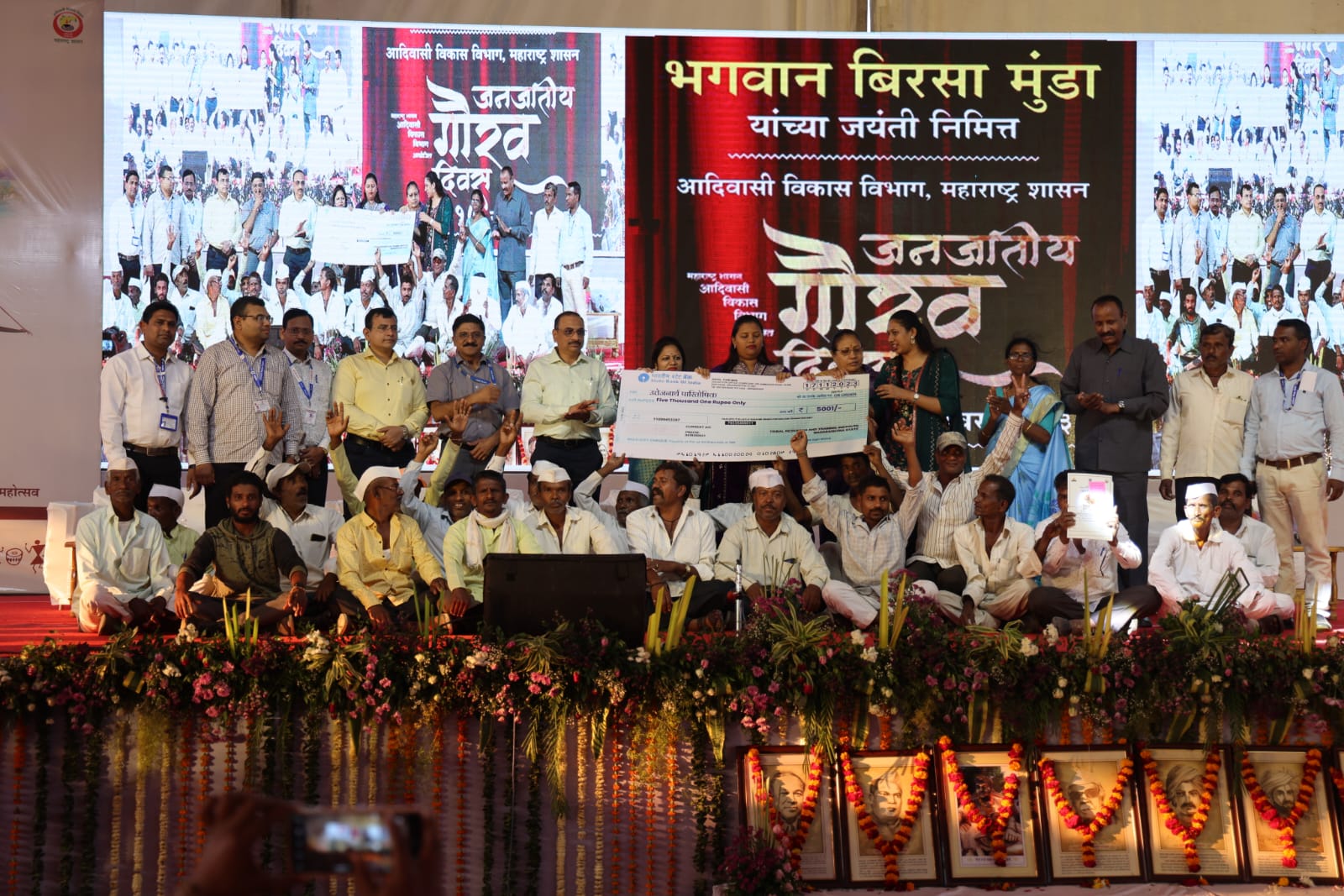 तत्पूर्वी प्रमुख पाहुण्यांचे बिरसा मुंडा प्रतिमा देऊन स्वागत करण्यात आले.
