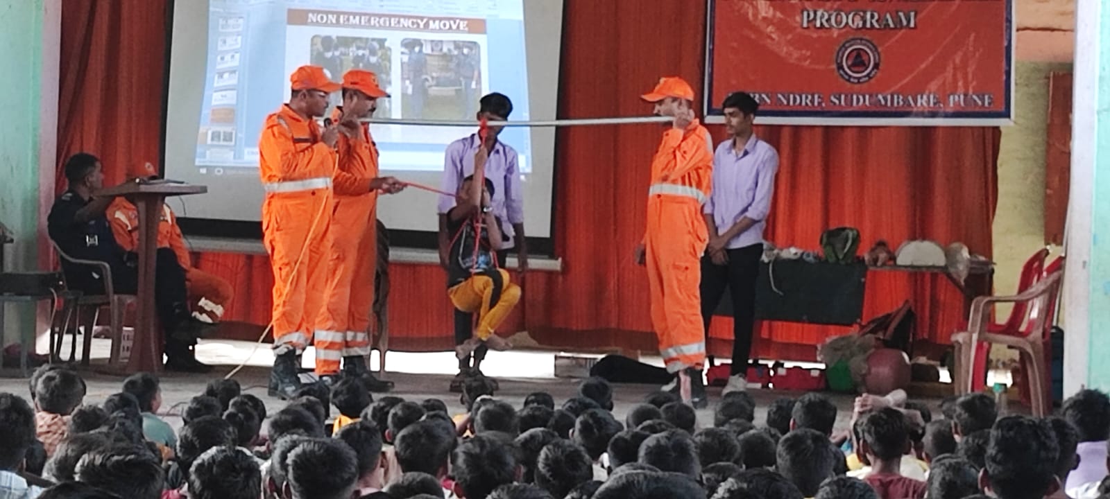 आपत्ती व्यवस्थापन कार्यालय पुणे अंतर्गत जिल्हाधिकारी कार्यालय नंदुरबार आणि शिक्षणाधिकारी कार्यालय नंदुरबार यांच्या संयुक्त विद्यमाने 16 ते 25 डिसेंबर दरम्यान शाळेच्या सुरक्षा व वैयक्तिक सुरक्षेसाठी नंदुरबार येथे पुणे येथील एन.डी.आर.एफ मार्फत 2 अधिकारी आणि 16 जावनांच्या माध्यमातून जिल्ह्यातील शाळांमध्ये शाळा सुरक्षा व वैयक्तिक सुरक्षेसाठी प्रशिक्षण देण्यात येत आहे. यामध्ये नंदुरबार येथील एस.ए.मिशन हायस्कूल व कनिष्ठ महाविद्यालय येथील जिमखान्यात दुपारच्या सत्रात घेण्यात आले.