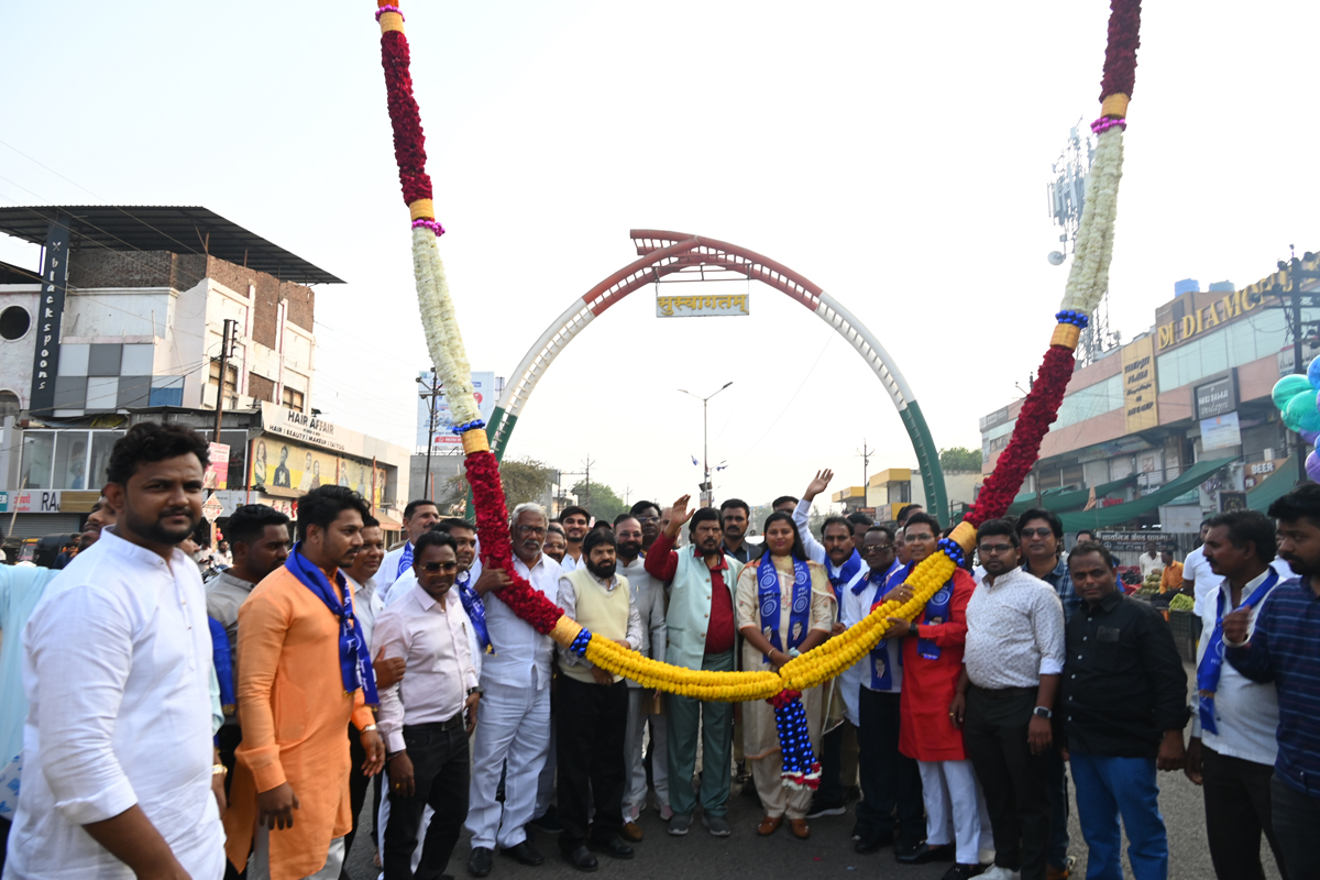 अयोध्या येथे अभिमंत्रित झालेल्या अक्षदा कलशाची तळोदा शहरात भव्य शोभायात्रा