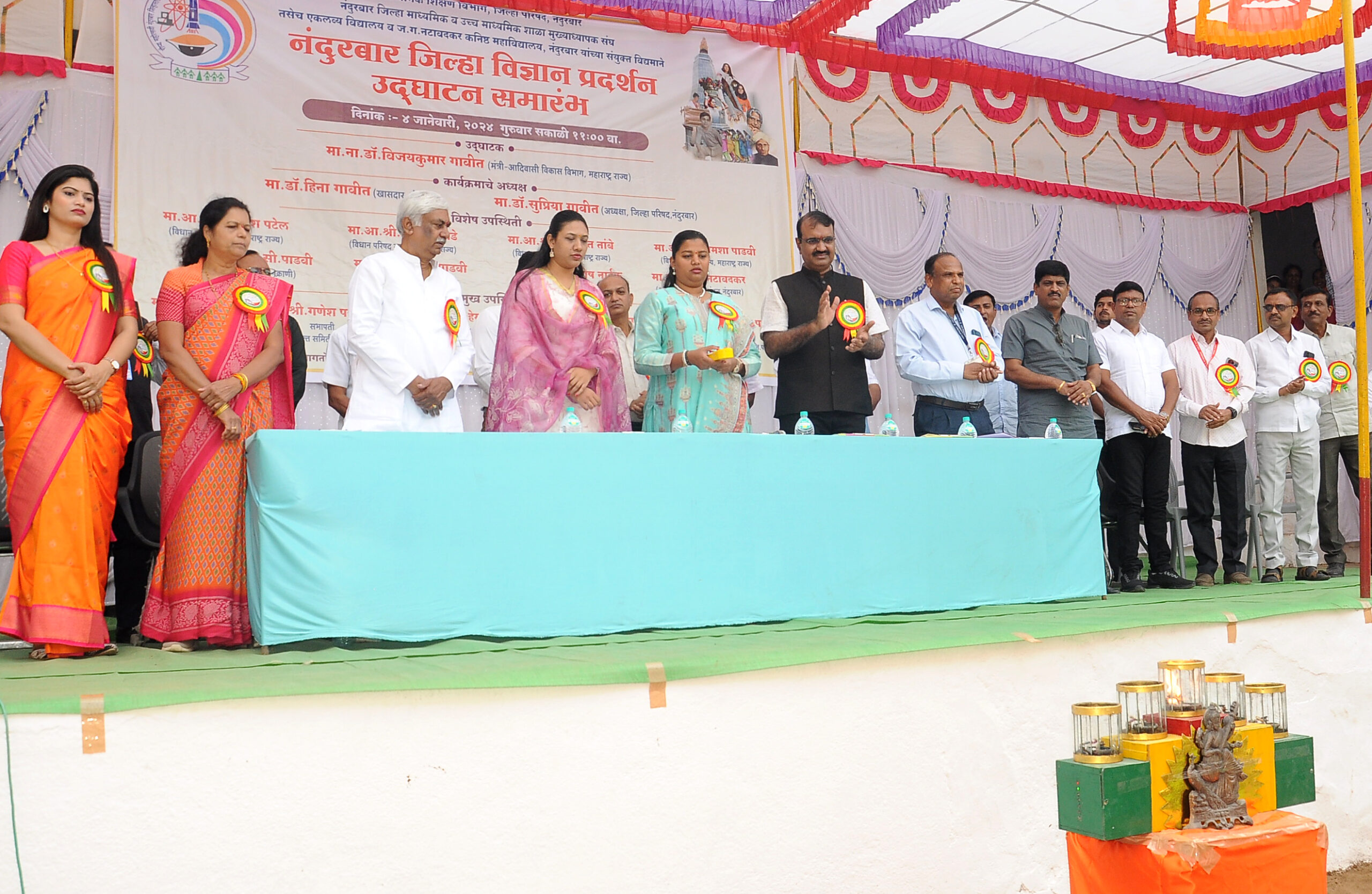 नंदुरबार येथील एकलव्य विद्यालयात जिल्हा विज्ञान प्रदर्शनाचे उद्घाटन लोकसभेच्या खासदार डॉ. हिना गावित यांच्या हस्ते रिमोटव्दारे दिपप्रज्वलन करुन करण्यात आले.
