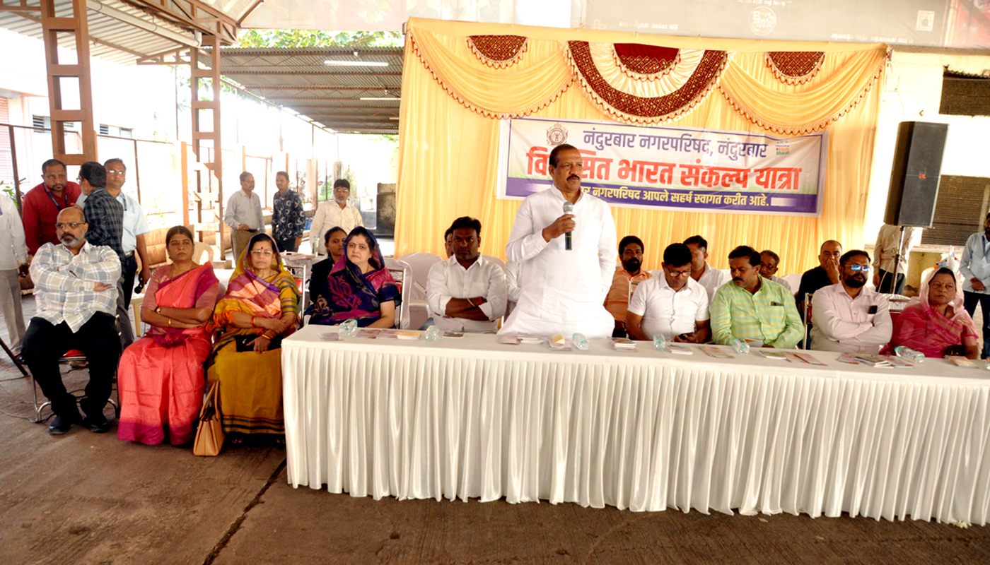 नंदुरबार शहरातील नाट्यमंदिर परिसरातील डोम मध्ये नंदुरबार नगरपालिका अंतर्गत विकसित भारत संकल्प यात्रेचा उद्घाटन राज्याचे आदिवासी विकासमंत्री डॉ विजयकुमार गावित यांच्या हस्ते करण्यात आले.