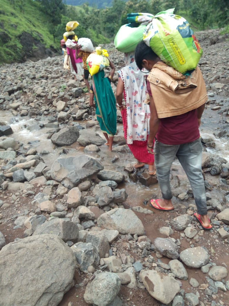 केंद्र शासनाने कोरोना काळात उत्पन्नाचे साधन ठप्प झालेल्या गोर- गरिब जनतेसाठी काही महिन्यासाठी मोफत धान्य वाटप योजना जाहीर केली होती. मोफतचे व शंभर रुपयांचे धान्य घेण्यासाठी सातपुड्याच्या दुर्गम-अतिदुर्गम भागातील नागरिक, स्वातंत्र्य मिळूनदेखील 74 वर्षांनंतरही, गाव-पाडा अतिदुर्गम भागातील नागरिक, सातपुड्याच्या कडेकपरीतून रस्ता तुडवत, धान्य आणण्याची कसरत करीत जीवन जगत आहेत. या परिसरातील नागरिक अद्यापही मूलभूत सुविधांपासून वंचीत आहेत.
