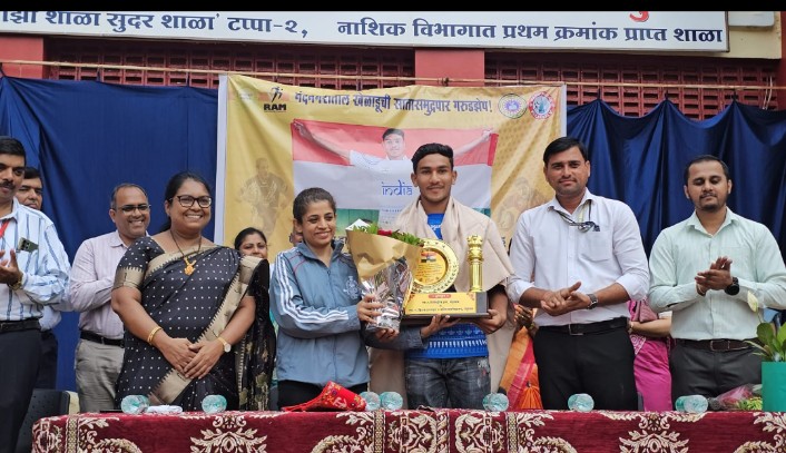 होहहॉट,चीन येथे 13 व 14 सप्टेंबर दरम्यान झालेल्या आंतरराष्ट्रीय स्पर्धेकरीता प्रणव गावित याची निवड झाली होती तो नुकताच भारतात परतला असून यानिमित्ताने शाळेत प्रणव गावित याचा सत्कार सोहळा आयोजित करण्यात आला होता प्रसंगी जिल्हाधिकारी मित्ताली सेठी,उपशिक्षणाधिकारी निलेश लोहकरे,गटशिक्षणअधिकारी जयंत चौरे, क्रीडा अधिकारी ओंकार जाधव, संजय बेलोरकर रोटरी क्लबचे माजी अध्यक्ष इसरार सय्यद,सदस्य राजेश्वर चौधरी,श्रॉफ हायस्कूलच्या मुख्याध्यापिका सुषमा शाह,मुख्याध्यापक संघटनेचे अध्यक्ष मुकेश पाटील व कपूरचंद मराठे आदी उपस्थितीत होते.