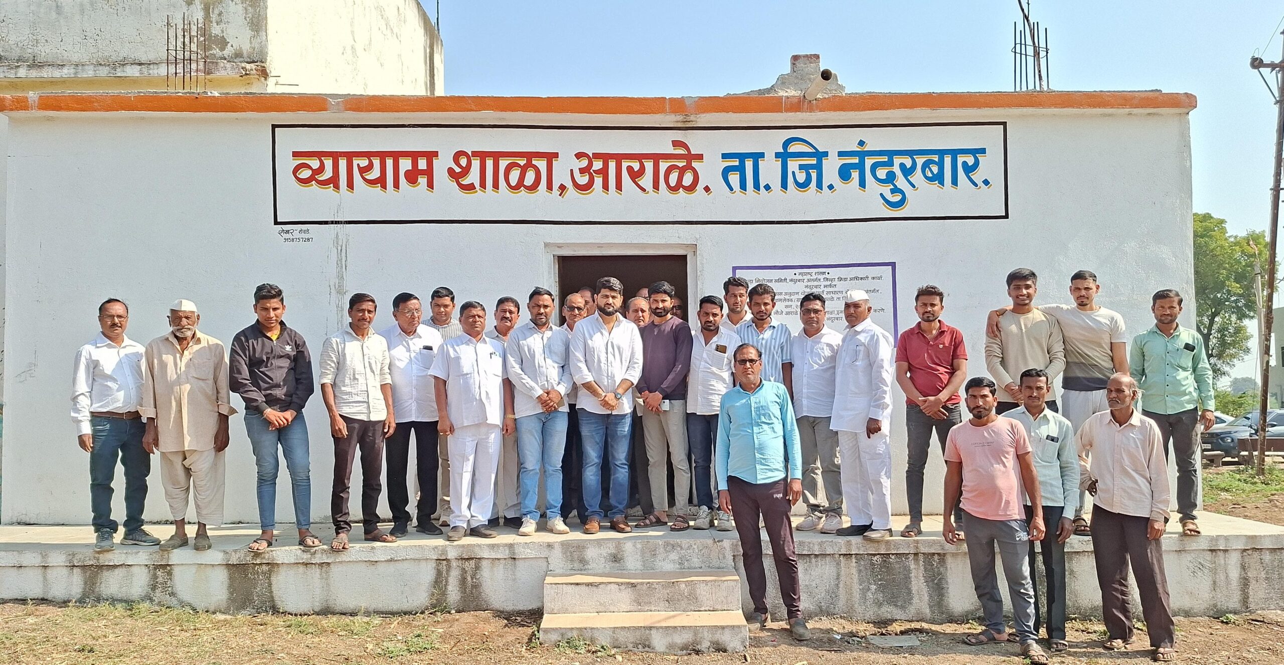 जिल्हा नियोजन समिती अंतर्गत क्रीडाधिकारी कार्यालय मार्फत सर्वसाधारण योजनेचा माध्यमातून ७ लाख रुपयांचे अनुदान मंजूर करण्यात आले होते. शारीरिक स्वास्थ्य वाढविणारी आणि आरोग्य टिकविणारी क्रिया म्हणजे व्यायामाकडे पाहिले जाते. नियमित व्यायामाने अनेक रोग टाळता येतात आणि शरीर निरोगी ठेवण्यास मदतही होत असल्याची बाब लक्षात घेऊन शिवसेना जिल्हाप्रमुख ॲड.राम रघुवंशी यांच्या प्रयत्नातून आराळे गावात जिल्हा नियोजन समिती अंतर्गत प्राप्त निधीतून व्यायाम शाळेचे बांधकाम झाले.