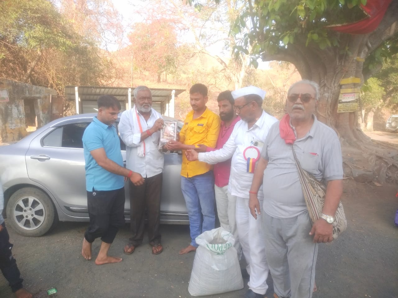 पदयात्रेदरम्यान सकाळी राजपिपला (गुजरात) येथे सेवा फ्रूट सप्लायरतर्फे फराळाचे वाटप करण्यात आले. यावेळी ट्रस्टचे अध्यक्ष लालचंद्र राठोड यांच्यासह रनाळा येथील धनराज धनगर, किशोर राठोड, शरद राठोड, राजू पवार, बापू माळी आदी उपस्थित होते. दुपारच्या सत्रात शनिमांडळ येथील भाविकांनी वाहनाद्वारे फराळाची व्यवस्था केली.
