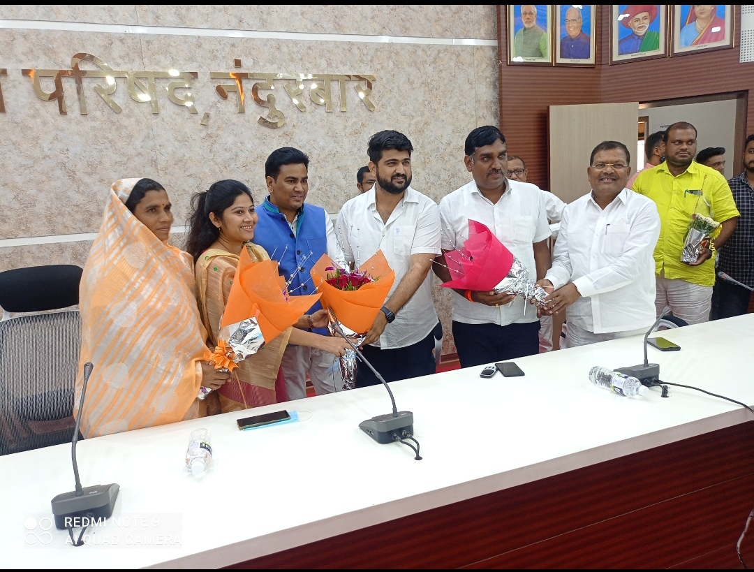 नंदूरबार जिल्हा परिषद उपाध्यक्ष पदासाठी शिवसेनातर्फे ॲड. राम रघुवंशी यांचा एकमेव अर्ज दाखल करण्यात आला आहे.तर सभापती पदासाठी शिवसेनेचे गणेश पराडके व काँग्रेसचे अजित नाईक यांचा एकमेव अर्ज दाखल करण्यात आला आहे.त्यामुळे नंदुरबार जिल्हा परिषदेच्या उपाध्यक्ष पदी ॲड. राम रघुवंशी व सभापती पदासाठी शिवसेनेचे गणेश पराडके व काँग्रेसचे अजित नाईक यांची बिनविरोध निवड झाली असून.याची घोषणा पिठासिन अधिकारी चेतनसिंग गिरासे यांनी केली.
