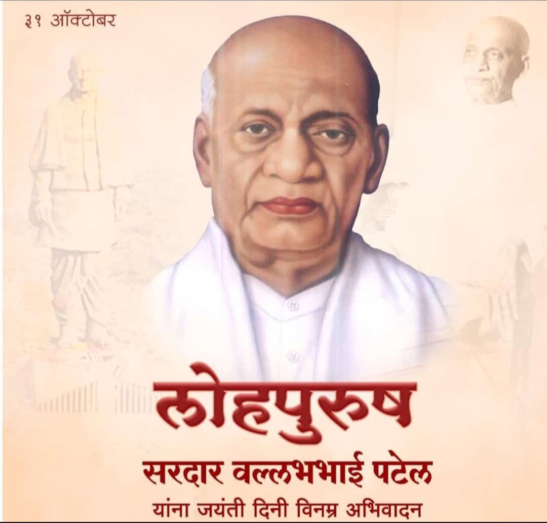 देशाच्या राजकीय आणि सामाजिक जीवनात पोलादी पुरुष (आयर्न मॅन) म्हणून ओळख असलेल्या सरदार वल्लभभाई पटेल यांचा ३१ ऑक्टोबर हा जयंती दिन साऱ्या देशात मोठ्या उत्साहात साजरा केला जातो.वल्लभभाई पटेल यांचा जन्म ३१ ऑक्टोबर १८७५ रोजी गुजरातच्या खेडा जिल्ह्यातील करमसद येथे झाला अन् ब्रिटिश राजवटीला तगडं आव्हान देणारा जणू पोलादी पुरुष च उदयास आला.वल्लभभाई यांच्या वडिलांचे नाव झवेरभाई तर,आईचे लाडबाबेन. वयाच्या १८ व्या वर्षी त्यांचा विवाह झवेरबा यांच्याशी झाला.त्यानंतर त्यांनी गोध्रा येथे आपल्या गृहस्थ जीवनास सुरुवात केली.त्यांना मनिबेन अन् डाह्याभाई ही दोन अपत्ये होती.वल्लभभाई यांना सोमाभाई, नरसिंहभाई,विठ्ठलभाई, काशीभाई हे चार भाऊ आणि दहिबा ही बहीण असा परिवार होता.