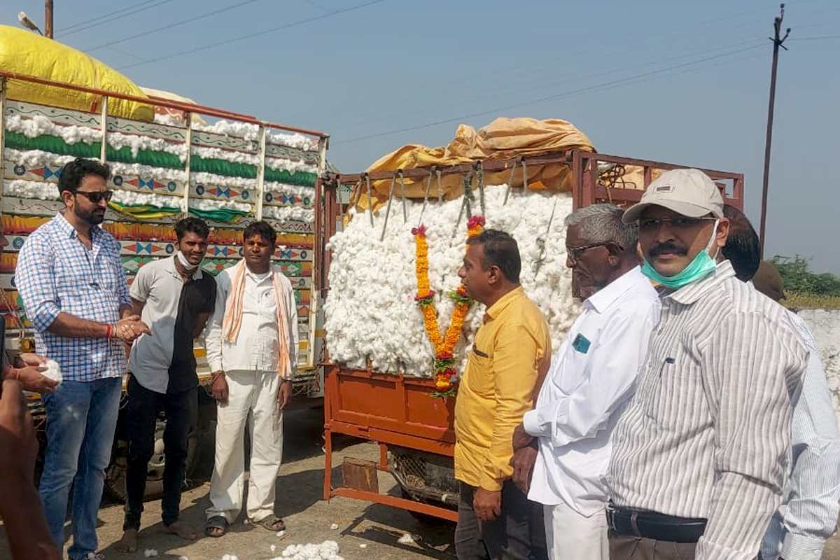 कृषी उत्पन्न बाजार समिती, नंदुरबारचे स्व.राजीव गांधी कापुस खरेदी केंद्र, पळाशी येथे कापुस खरेदीचा शुभारंभ आज दि.९ नोव्हेंबर रोजी सकाळी १० वाजता बाजार समितीचे सभापती हिरालाल पाटील यांच्या शुभहस्ते करण्यात आला.पहिल्या दिवशी साधारणः १५० क्विंटल कापुस (१० ते १२ वाहने) आवक झाली असुन किमान ८ हजार १०० व कमाल ८ हजार ३९० जास्तीत जास्त या दराने बाजार समितीचे परवानाधारक खरेदीदारांमार्फत कापुस खरेदी करण्यात आले.