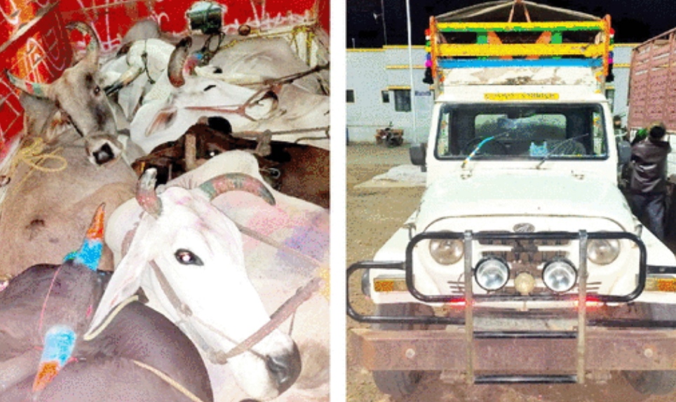 कत्तल करण्याच्या उद्देशाने जनावरांचे वाहतूक करणारे दोन वाहने जप्त, चार जणांना अटक