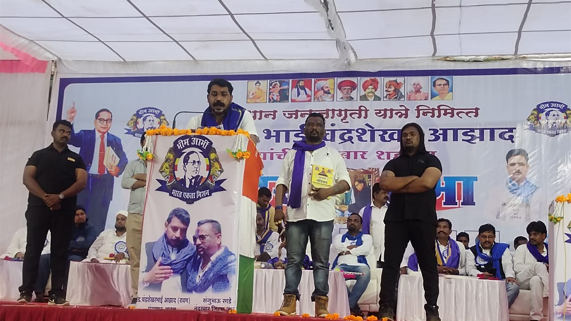 भिमआर्मी एकता मिशन अंतर्गत दि.१९ नोव्हेंबरपासून भीमा कोरेगाव येथून सुरु होणारी संविधान जनजागृती यात्रा आज नंदुरबारात आली. त्यानिमित्त आयोजित सभेत श्री.आझाद बोलत होते.