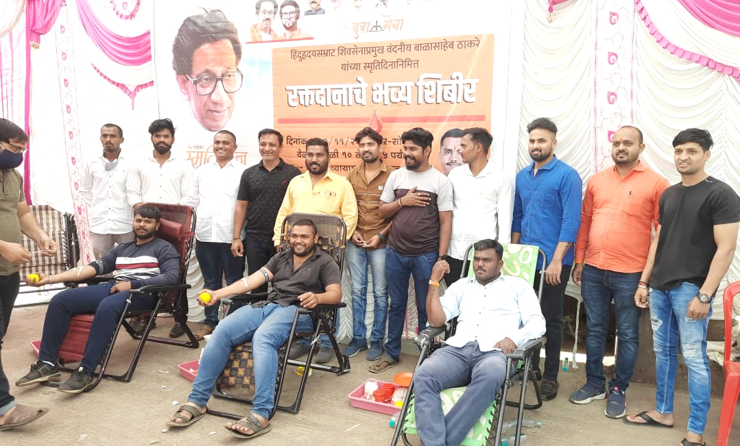 हिंदुहृदय सम्राट बाळासाहेब ठाकरे यांच्या स्मृतीनिमित्त युवा सेनेतर्फे रक्तदान शिबिराचे आयोजन करण्यात आले होते. यावेळी 51 शिवसैनिकांनी रक्तदान केले.