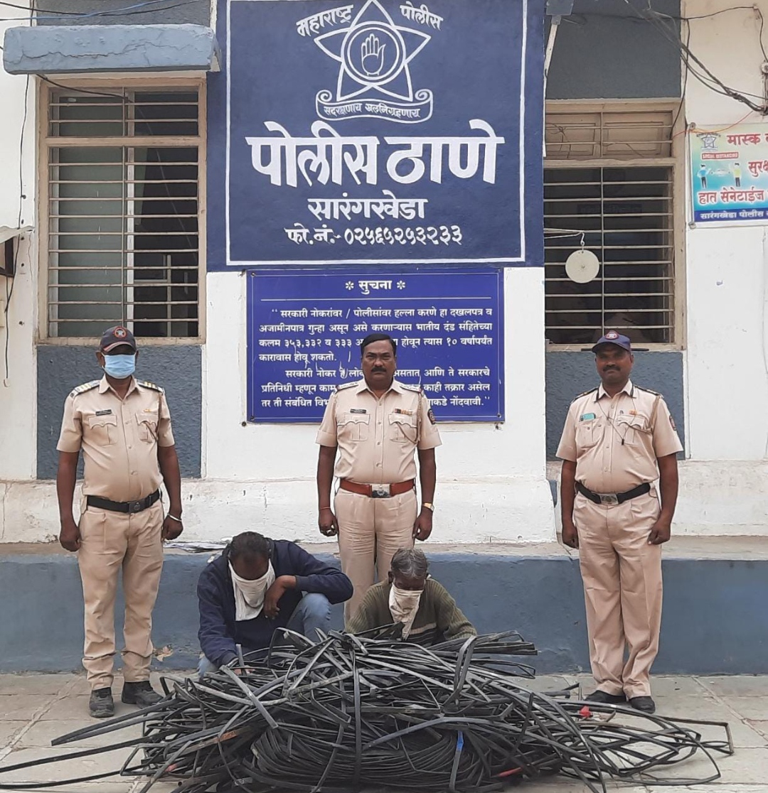कळंबू (ता.शहादा) शेत शिवारातील ठिबक सिंचनच्या नळ्या चोरी करणार्‍या दोन आरोपींना सारंगखेडा पोलीसांनी अटक केली आहे. त्यांच्याकडून ठिबक नळ्या हस्तगत करण्यात आल्या आहेत.