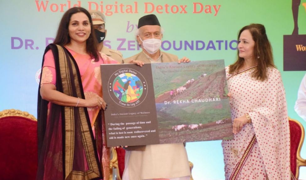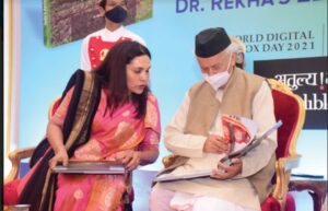 नंदुरबार येथील प्रसिद्ध उद्योजिका तथा झेप फाऊंडेशन आणि भारताच्या ग्लोबल वेलनेसच्या राजदूत ( Ambassodor ) डॉ . रेखा चौधरी लिखित “ इंडिया एन्शेंट लेगसी ऑफ वेलनेस ” ( निरोगीपणाचा भारतीय प्राचिन वारसा ) या पुस्तकाचे प्रकाशन महाराष्ट्राचे राज्यपाल भगतसिंग कोश्यारी यांच्या हस्ते करण्यात आले .